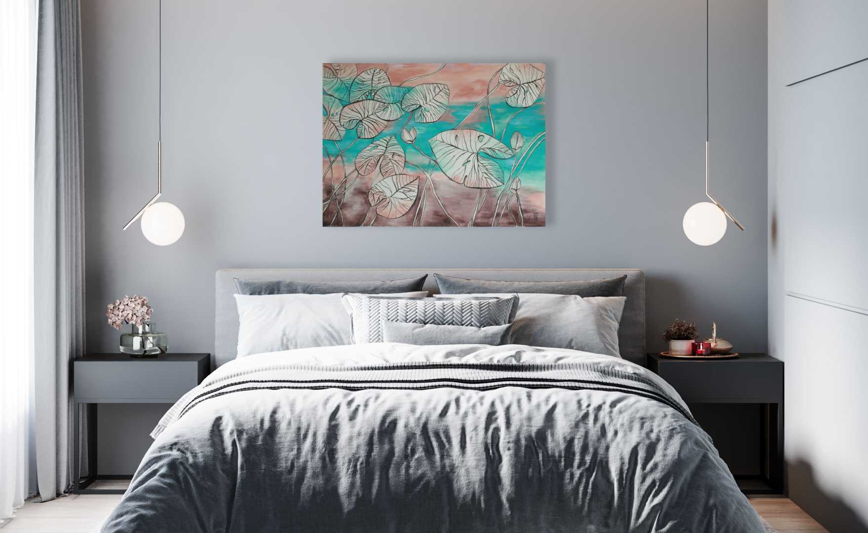 Графичный стиль и изысканная цветовая гамма делают эту работу универсальным декором для современных интерьеров. Картина идеально подойдет для стилей сканди, бохо, минимализм или эклектика.