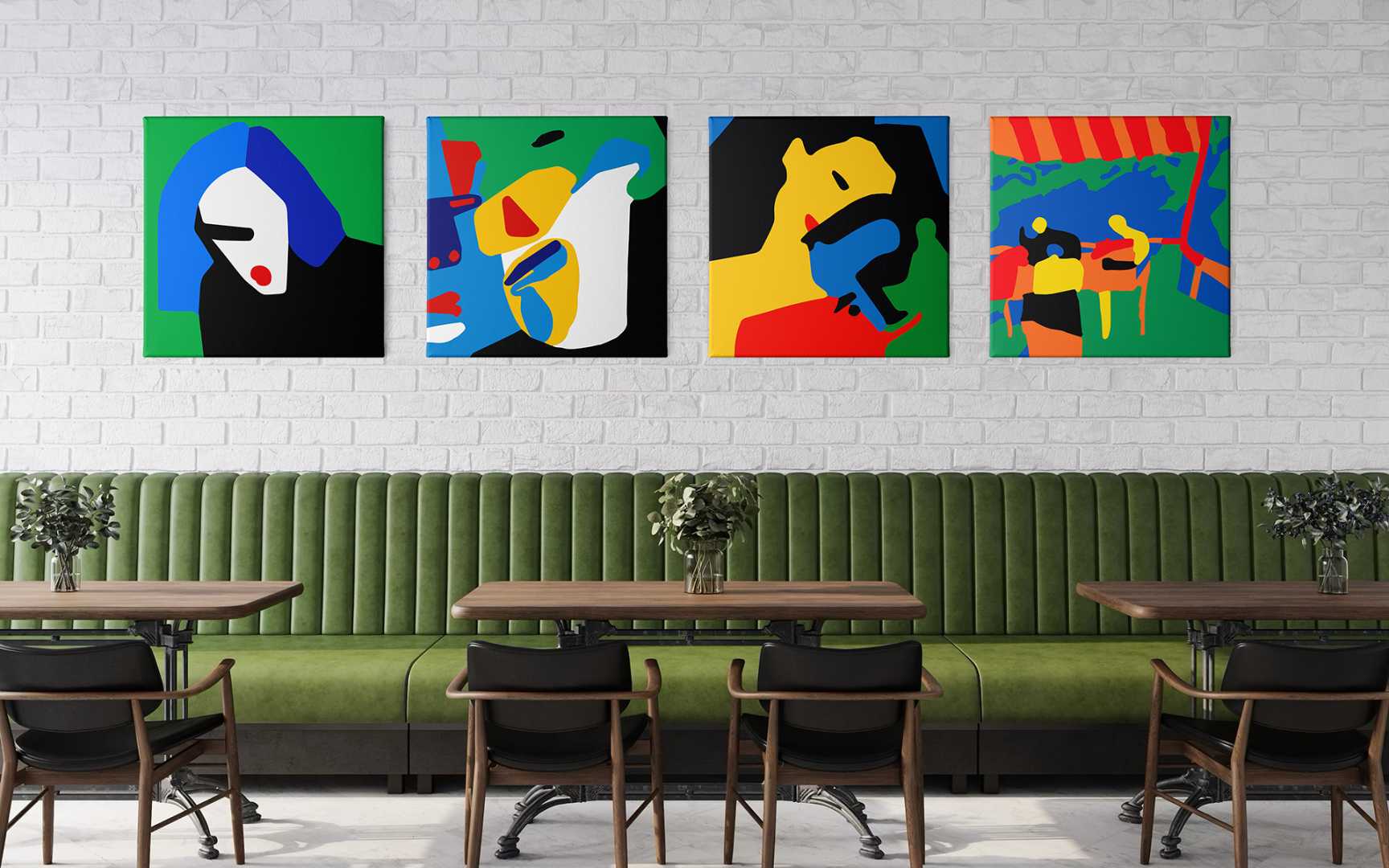 Четыре работы, объединенные в коллекцию — «Любовь», «Грусть», «Лето», «Дружба» — посвящены обычной жизни. Стилизованные силуэты и лица передают человеческие эмоции, делая каждую картину выразительным и оригинальным акцентом для современного интерьера.