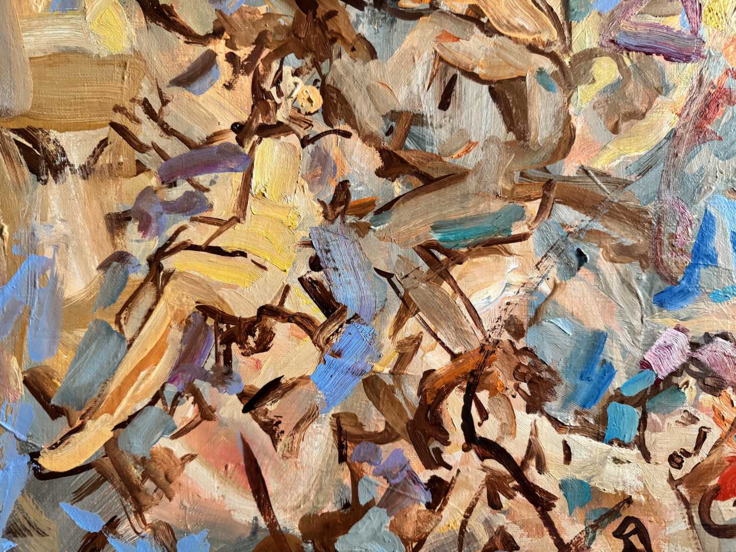 цветовые пятна, перекликающиеся между собой, что впоследствии живописец пытается передать на