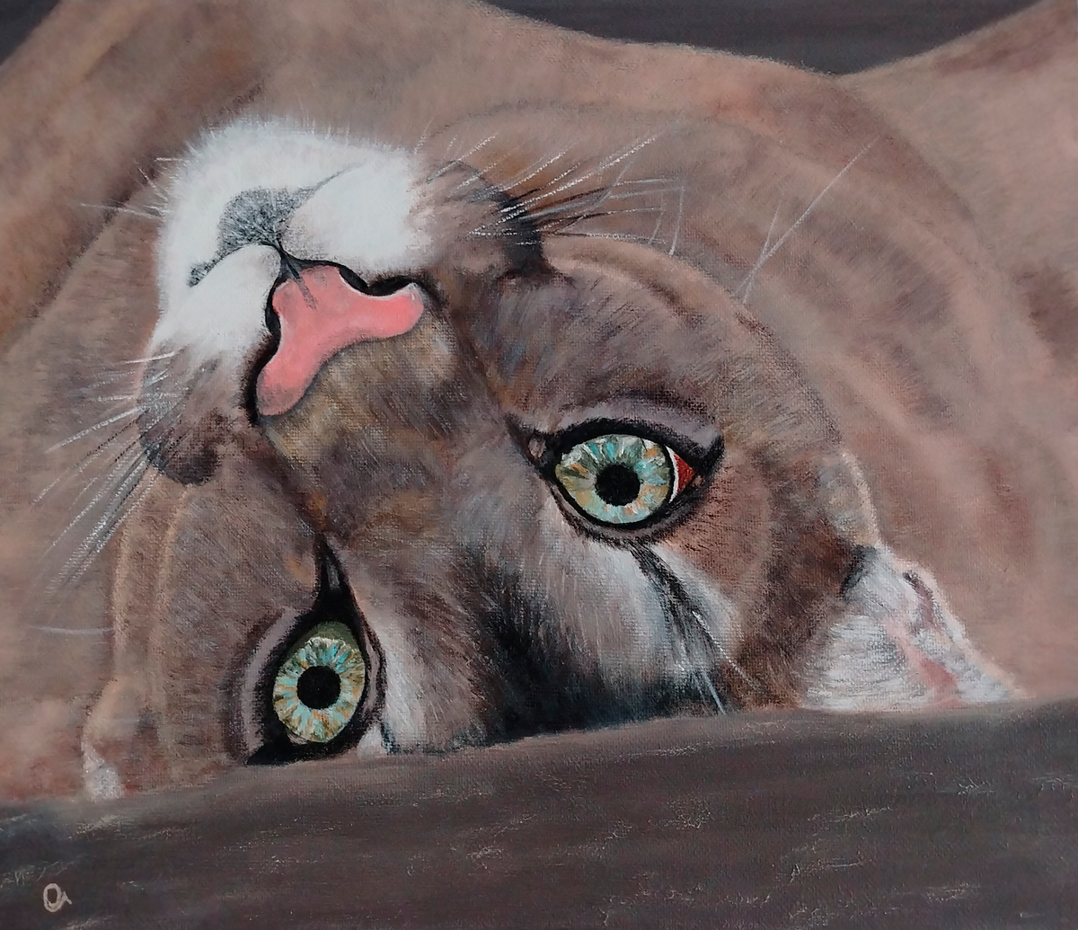 во спокойствия и взаимного доверия между дикой кошкой и наблюдателем. Цветовая гамма выдержана в тёплых коричневых и бежевых тонах, что придаёт работе мягкость и естественность.