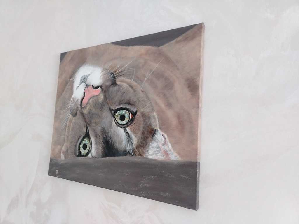Картина «Магия пумы» - эксклюзивное украшение интерьера. Эта картина вызывает интерес и притягивает взгляд. Композиция необычна — голова повернута и смотрит прямо на зрителя, создавая ощущение близости и живого присутствия, призывая взглянуть иначе на привычный мир. Умиротворенная поза создает чувст