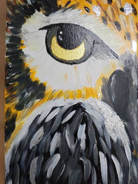 Работа выполнена акрилом, акварелью с золотой фольгой на бумаге 100% хлопок.