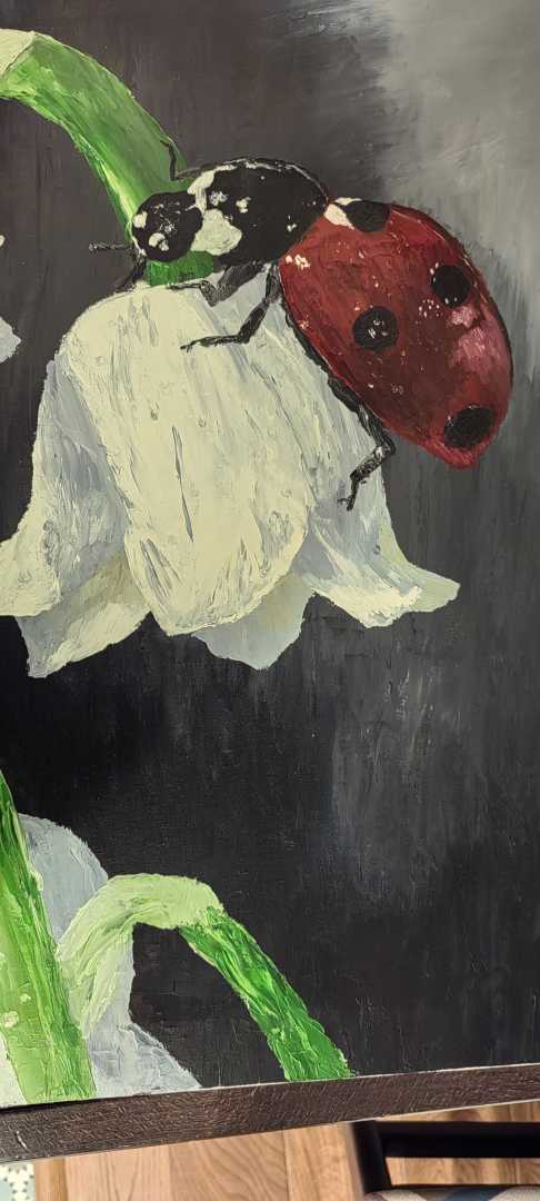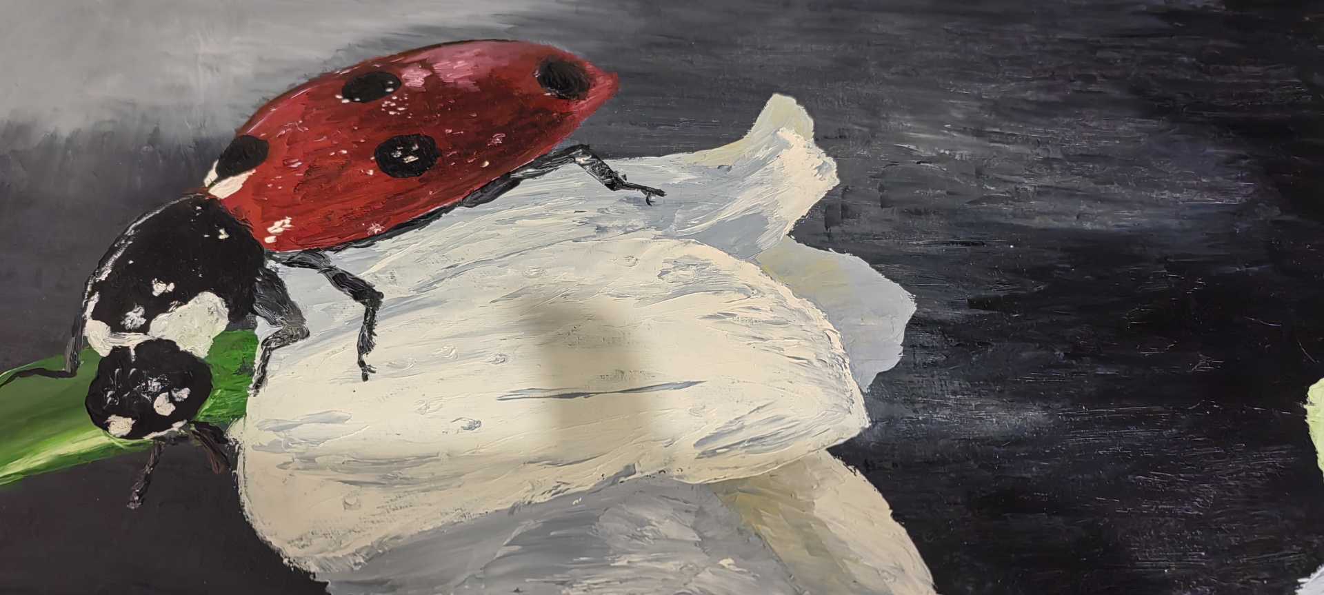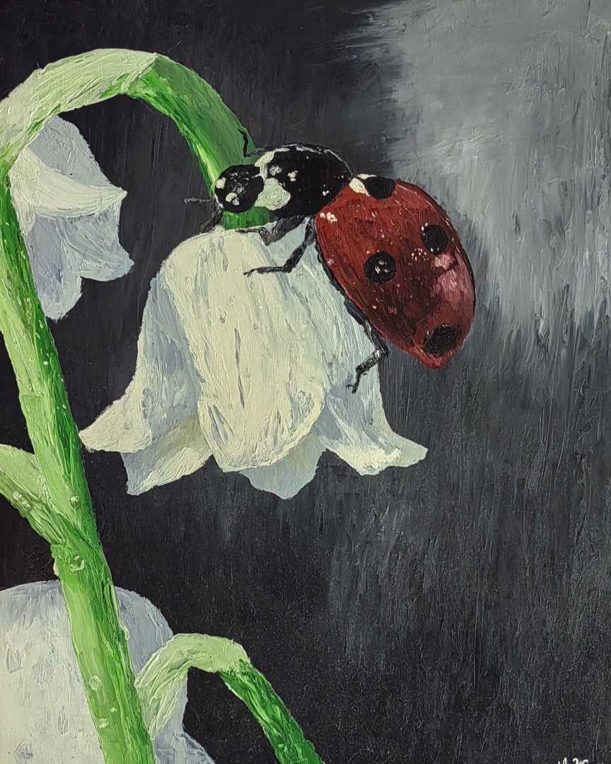 Картина "Божья коровка". Размер 40×50 см. Написана 22.2021г. масляными красками, в основном использовался мастихин.
