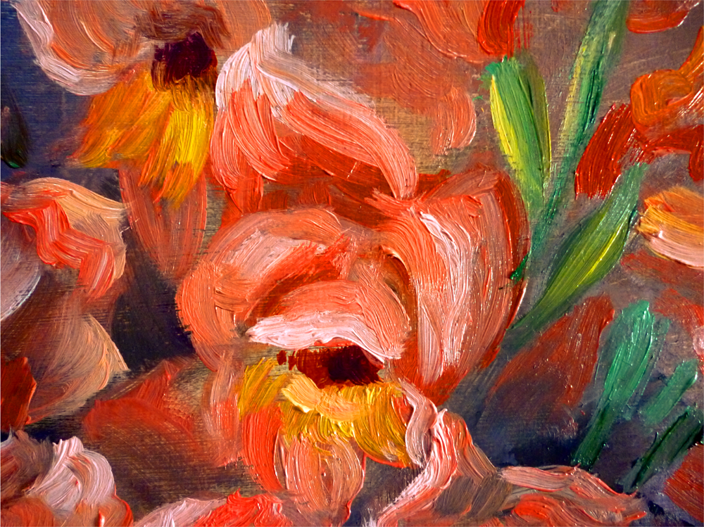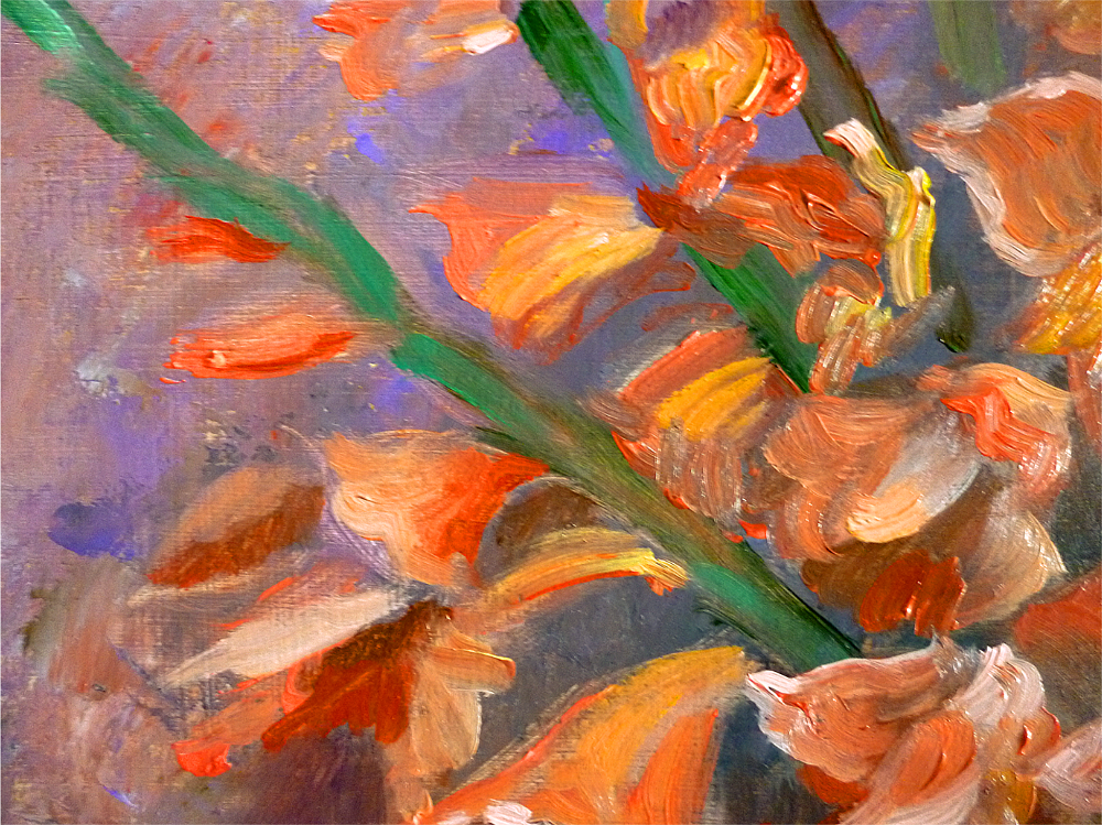 Картина маслом "Букет алых гладиолусов" написана на грунтованном оргалите размером 39, 5 / 40 см, толщиной 3 мм. Это уникальный экземпляр, ручная работа. Написано с натуры.