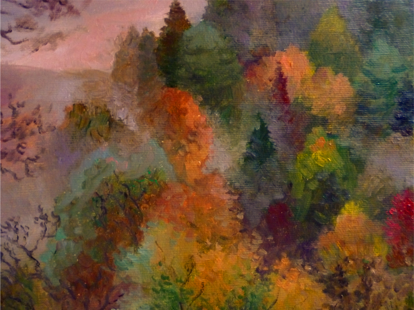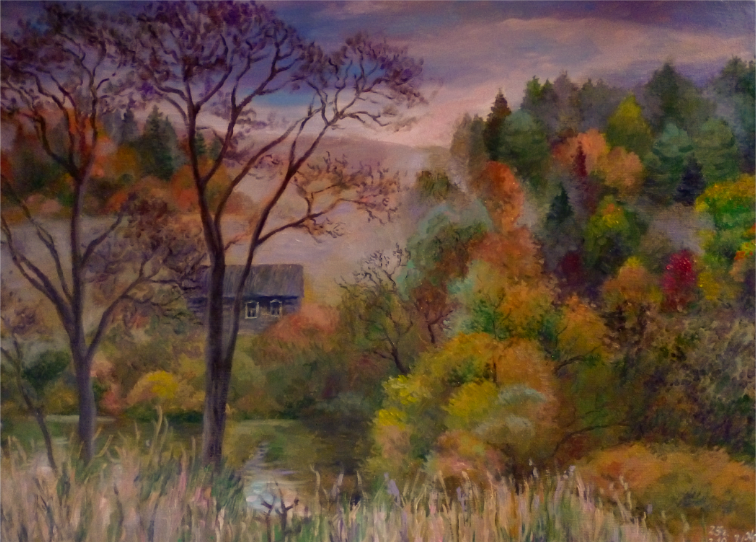 Это уникальный экземпляр, ручная работа. Написано по сюжетам реальной деревни. Осенний лес воссоздан по фото с живых наблюдений близлежащих осен