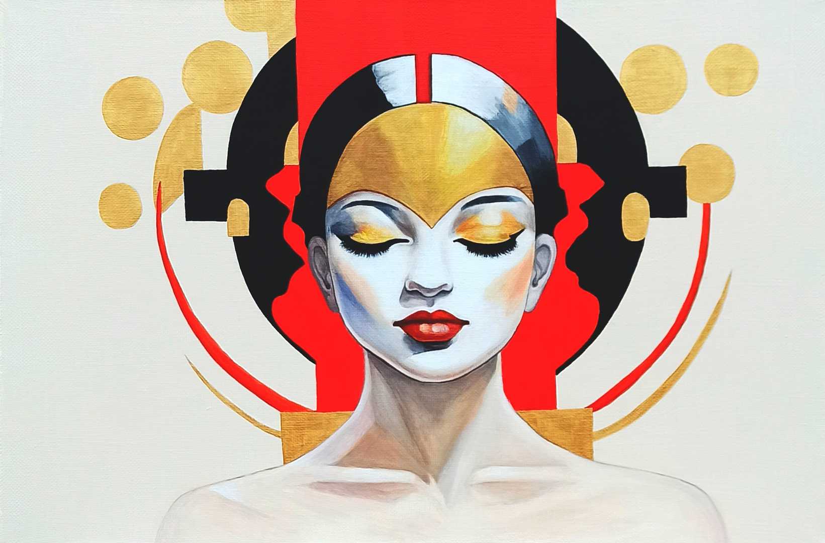 Картина «ГАРМОНИЯ ВНУТРИ» выполнена акрилом в жанре реализм с элементами геометрического искусства.