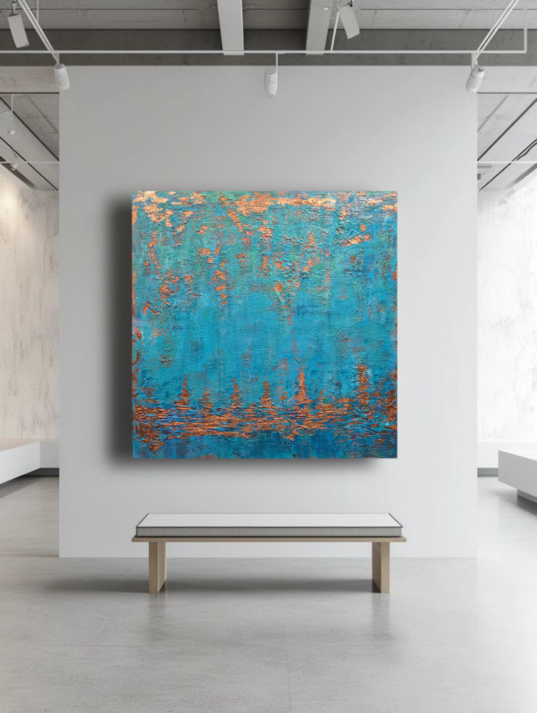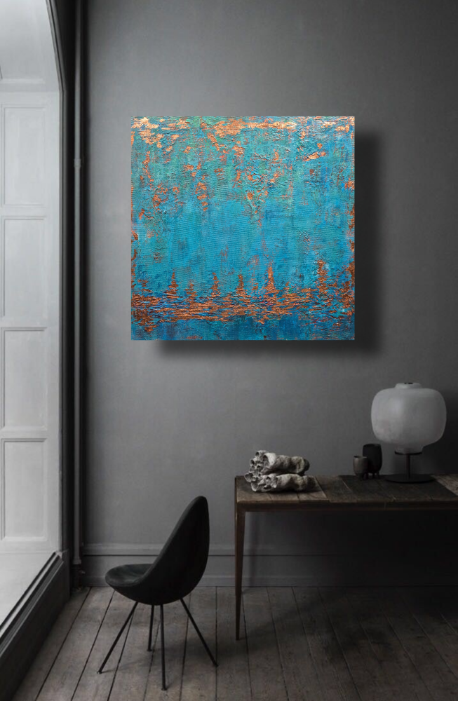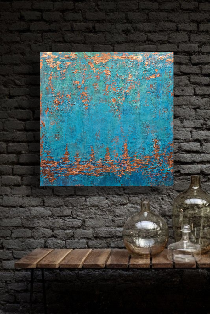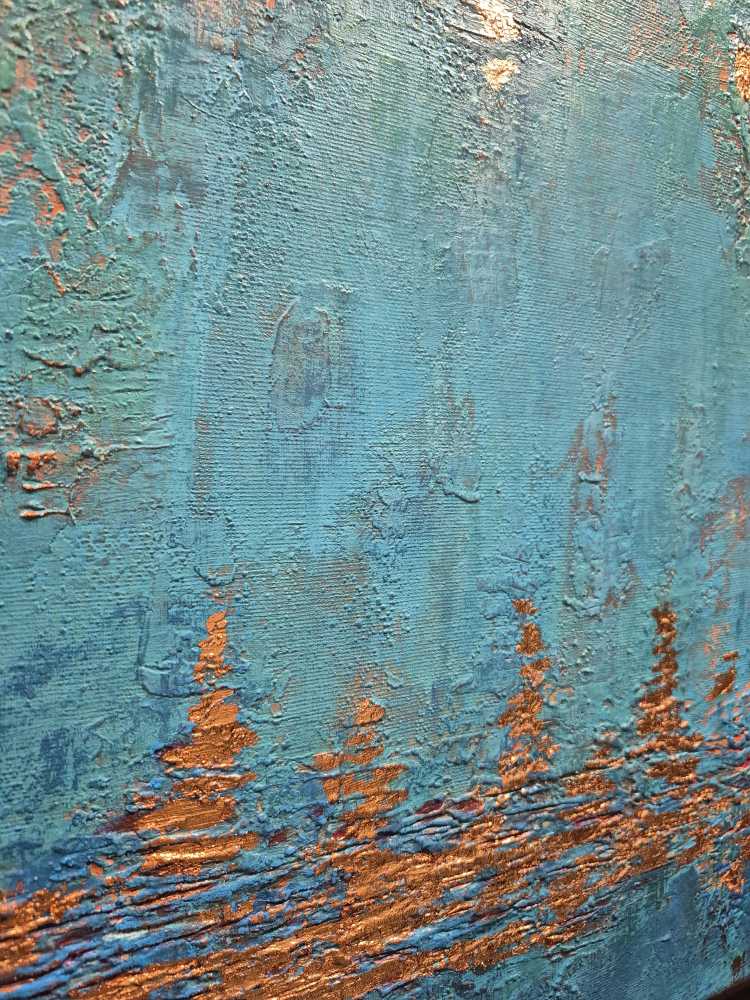 Материалы: Холст на подрамнике Текстурная паста Акрил Медная поталь Лак