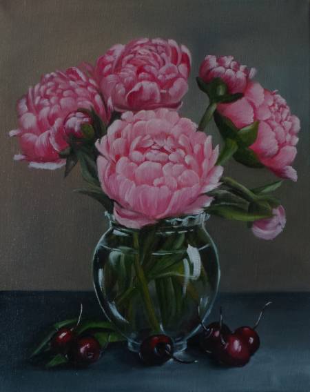 ности. Сюрреалистический стиль подчеркивает атмосферу тайны, оставляя место для интерпретации. Работа над картиной стала для меня эмоциональным путешествием. Я стремилась передать не только визуальную красоту, но и внутреннее состояние героини, ее скрытые переживания. Поиск идеального сочетания света и тени, передача текстуры ткани и нежности лепестков пионов – все это потребовало от меня колоссального терпения и многочасовой работы. Были моменты, когда я чувствовала себя потерянной в лабиринте своих эмоций, но стремление создать картину, которая бы будоражила воображение, помогло мне завершить работу. Картина словно хранит секрет, который зритель должен разгадать сам.