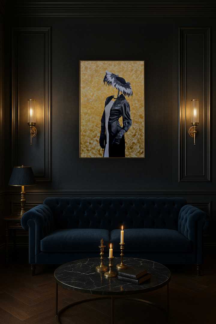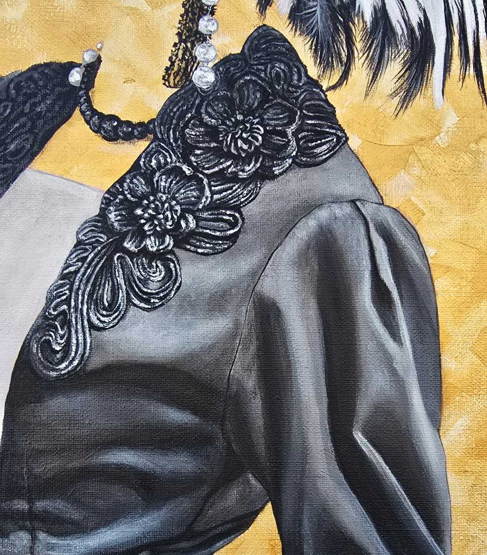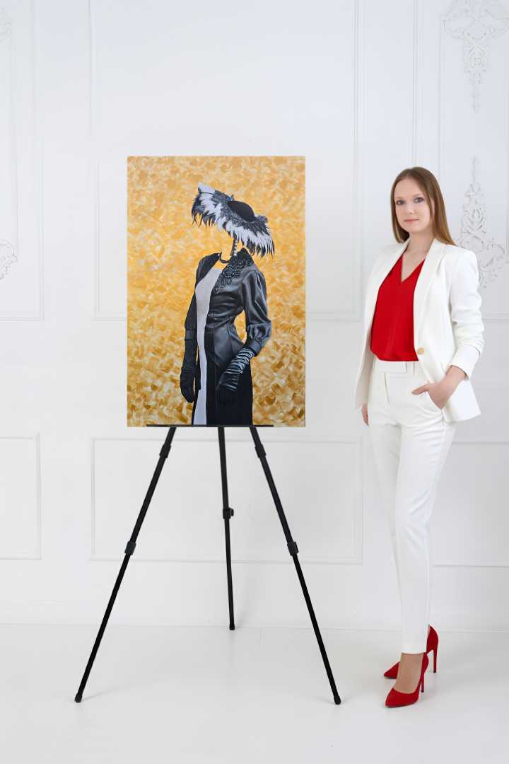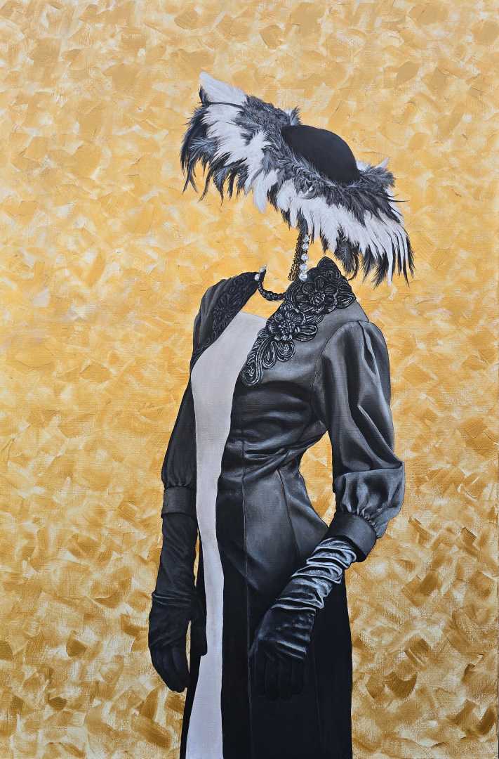 На картине изображены роскошный наряд и изысканная шляпа с перьями, однако внутри одежды отсутствует