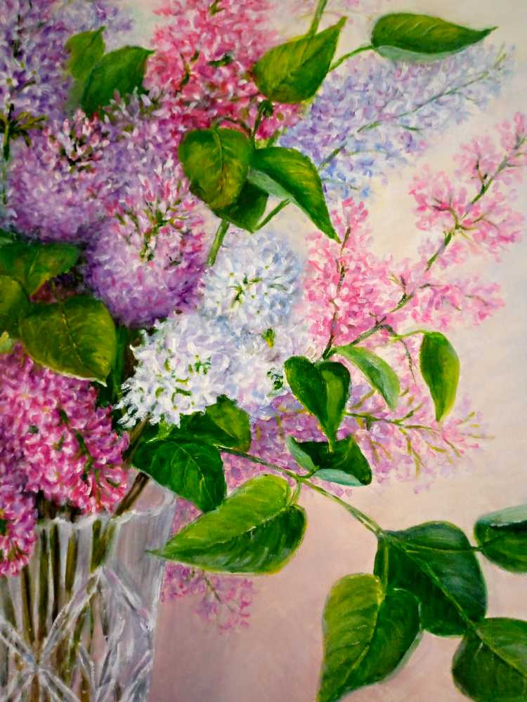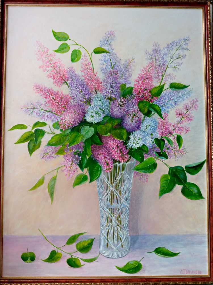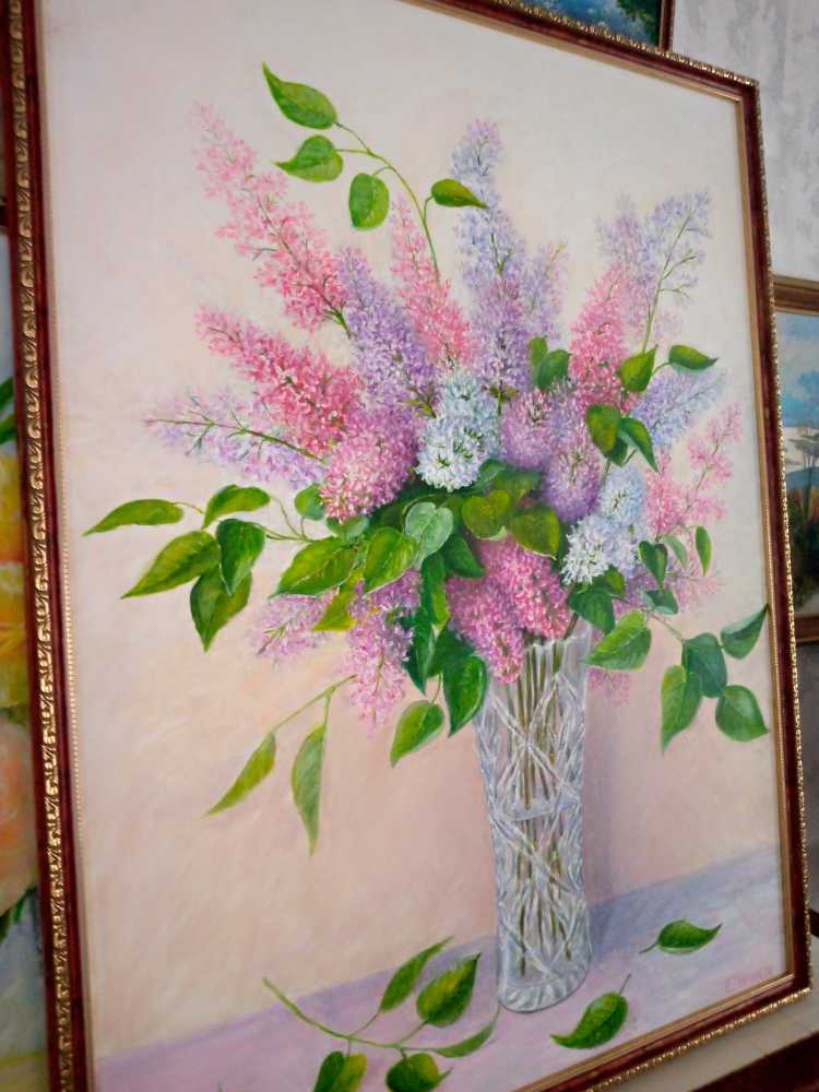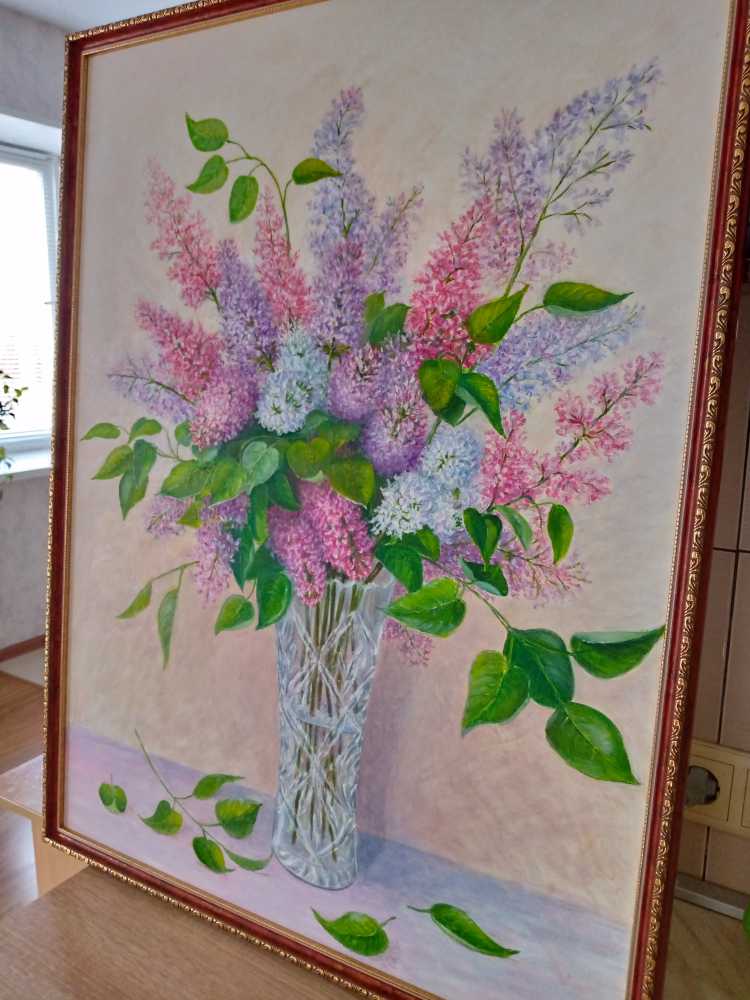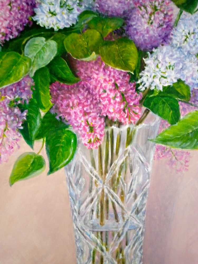 Картина «Сирень в хрустальной вазе» написана маслом на холсте с натурой. Тёплая, наполненная ароматом весны работа передает красоту сирени в прозрачной хрустальной вазе. Каждая деталь — от блеска стекла до мягких лепестков — создает ощущение свежести и гармонии.