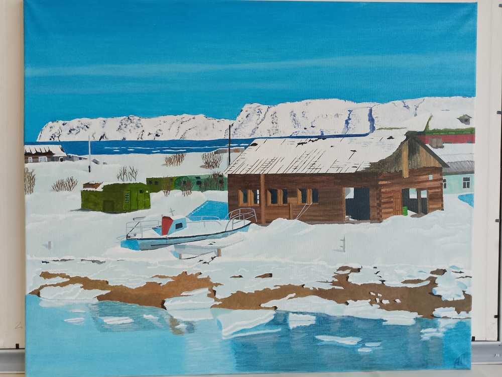 масло , холст 50х60 см. На картине изображен небольшой рыбацкий поселок Териберка , который находится в Мурманской области .