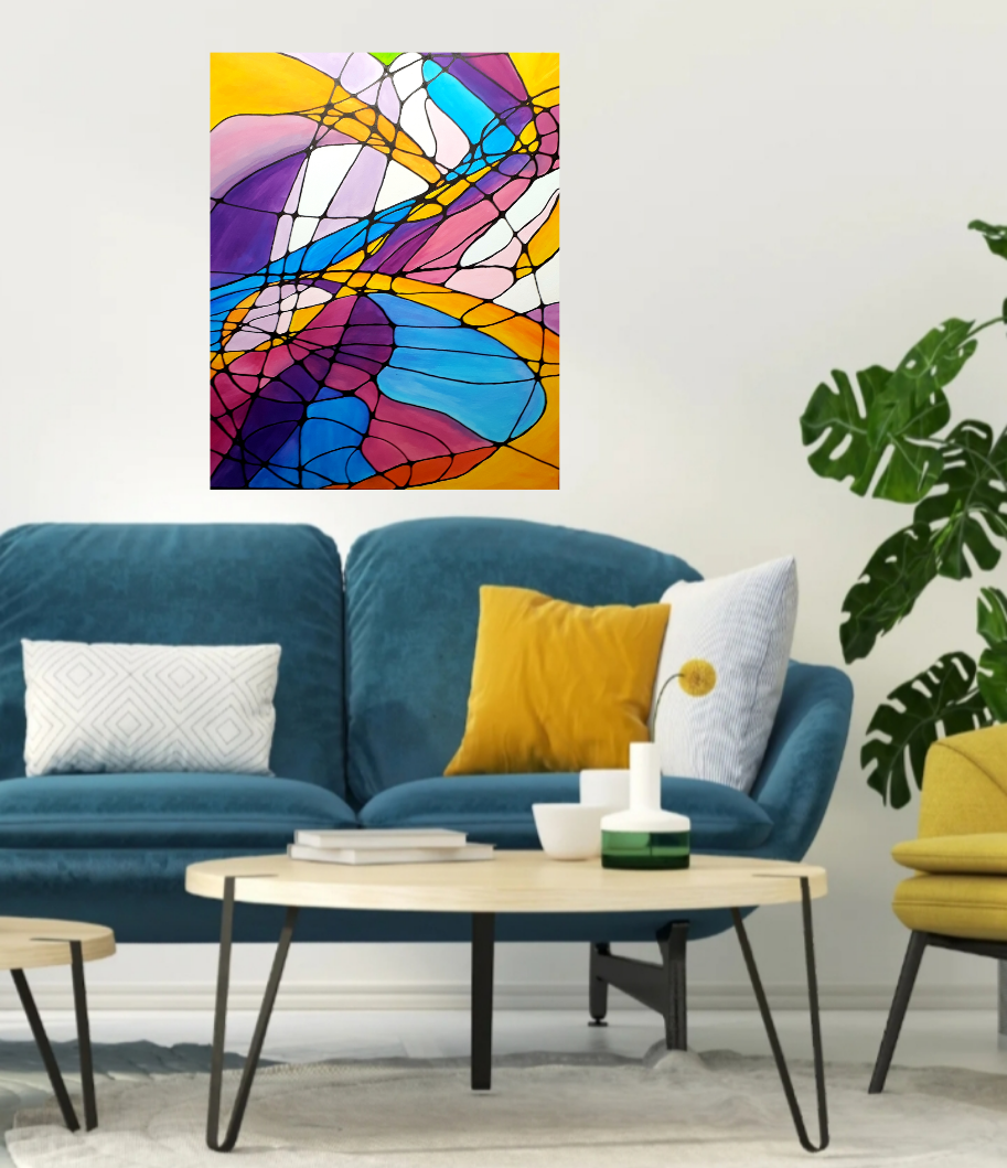 Эта яркая абстракция оживит интерьер Вашего дома и подарит минуты спокойствия, когда Вы будете рассматривать её, витиеватые линии.