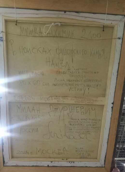..) На картине представлен момент триумфа. Мишка завершает историческую алхимическую мечту, находит истину! Поиск камня – это метафора поиска «особого пути», национальной идеи. Для России – это обретение бессмертия государственности через синтез науки и традиционных ценностей.
