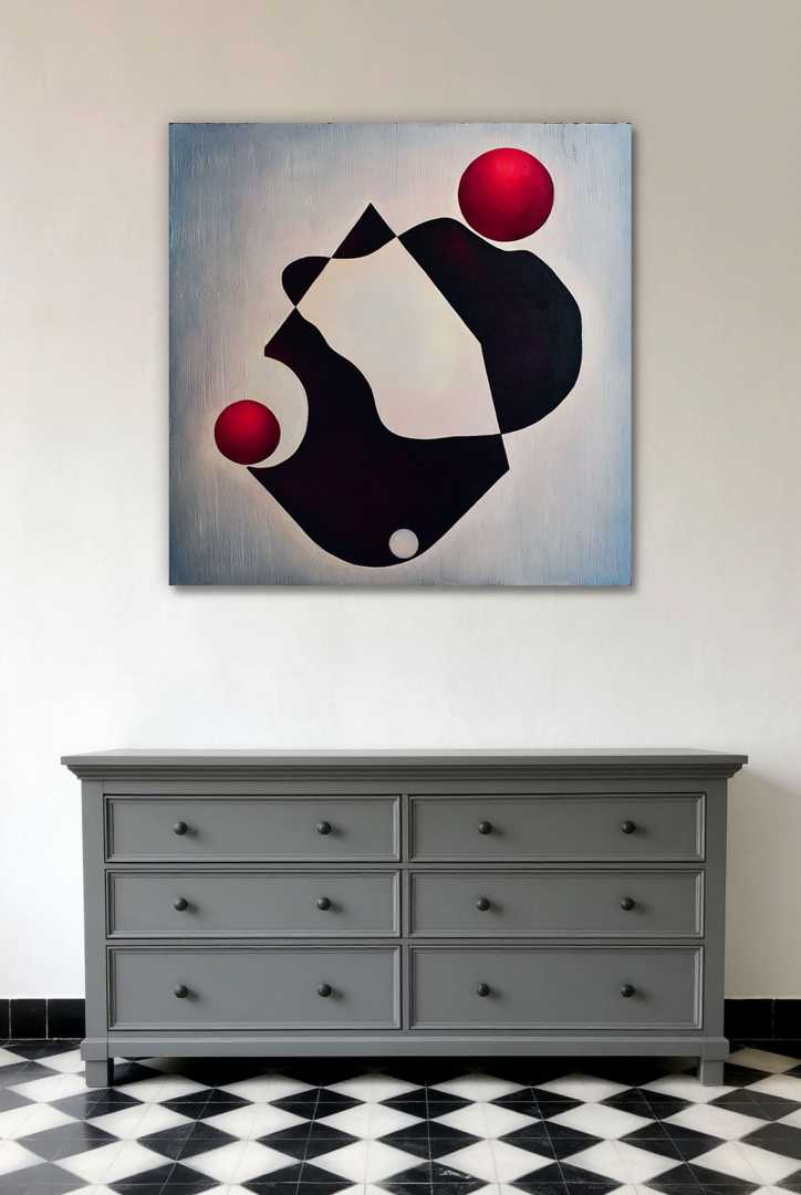 Модуль - это серия картин, в основе которых лежит синтез формы природных минералов с геометрическими элементами и фигурами, созданными в человеческом разуме. Композиция выделена на холсте за счёт окружающей её плотной текстуры из скульптурной пасты, создающей в комплексе эффект фрески изо