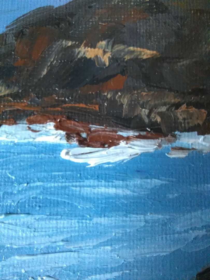 Морской пейзаж. Картина выполнена масляными красками, холст на картоне.