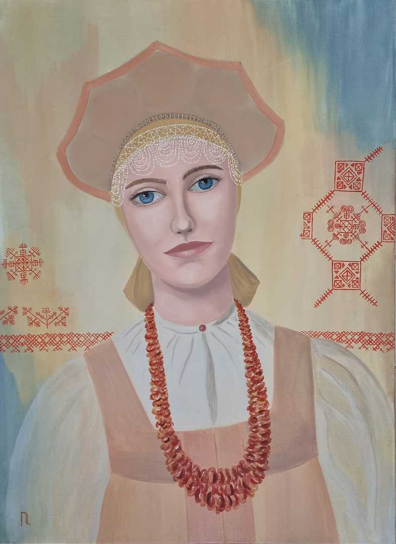После путешествия на Север я начала серию полотен, стремясь запечатлеть два ключевых элемента культурного кода Поморья: характер, читаемый в глубине взгляда, и ценности, зашифрованные в замысловатых орнаментах. Эти орнаменты, сошедшие с одежд жителей, стали моими проводниками в мир их души.