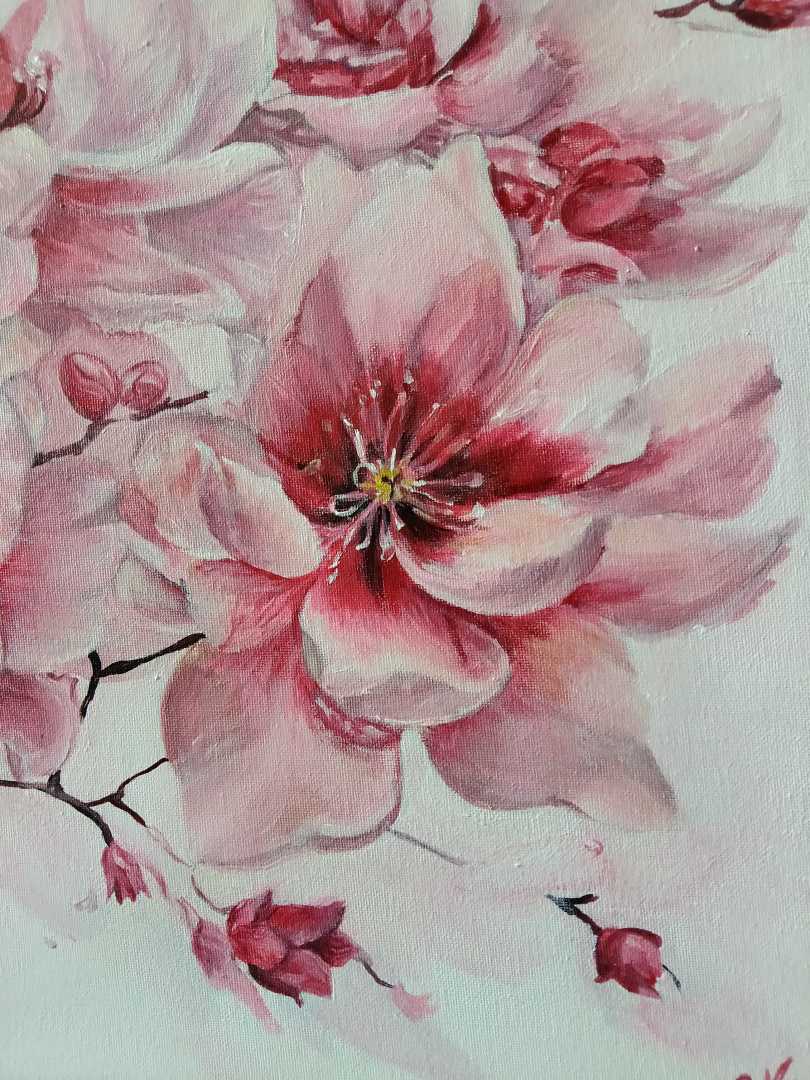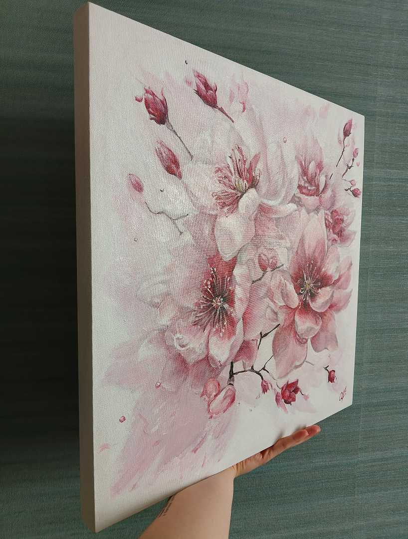 Также картина украсит холл жилого комплекса, гостиницу, салон красоты или кабинет специалиста. Цветущая ветвь наполнит пространство свежестью, спокойствием и изяществом, создавая созерцательное и благодушное настроение.