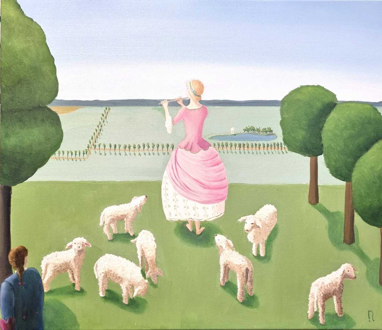 "Нежные томления" - это произведение барочного композитора Франсуа Куперена. В картине не дается однозначный ответ кто по кому томится. Каждый может решить сам. Картина выполнена с использованием трех техник - векторная заливка фона, растушевка предметов и людей и пастозная проработка овечек.