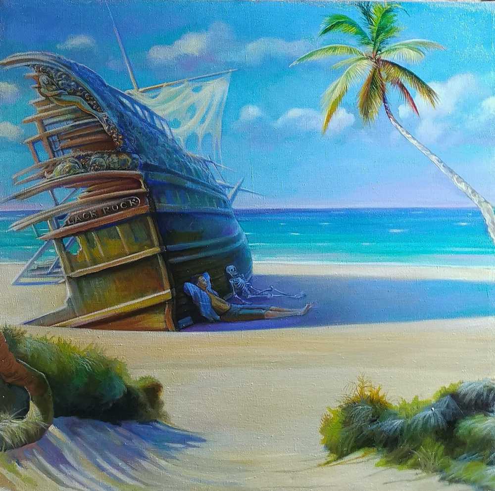 Заброшенный корабль у бирюзового берега