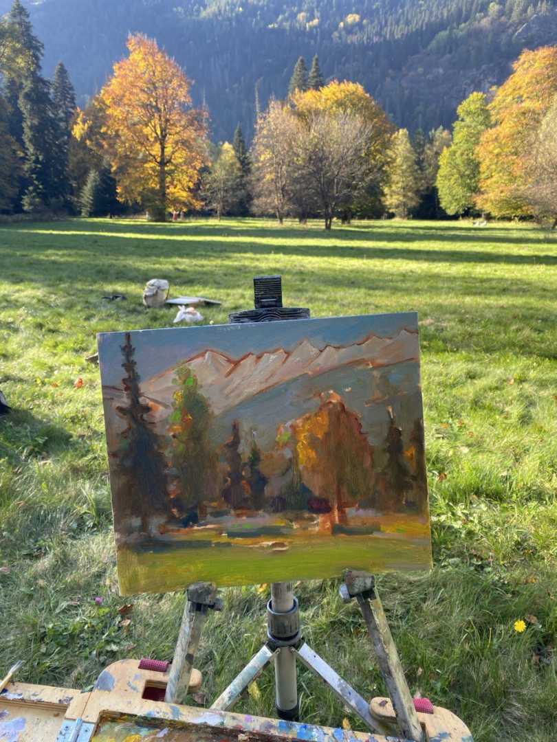 Картина создана на пленэре в горах Кавказа - в Тебердинском национальном парке в октябре прошлого года.