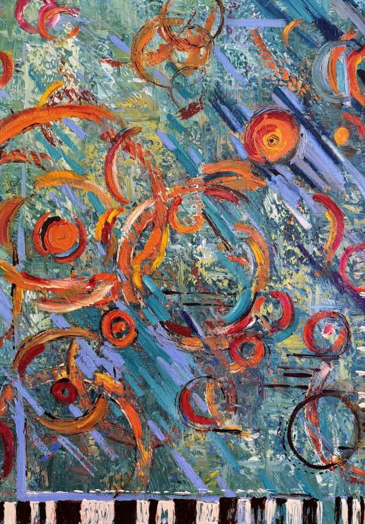Слушая музыку, художник переносится в особую атмосферу, где появляются различные образы, а иногда и просто яркие цветовые пятна, перекликающиеся между собой, что впоследствии живописец пытается передать на холсте.