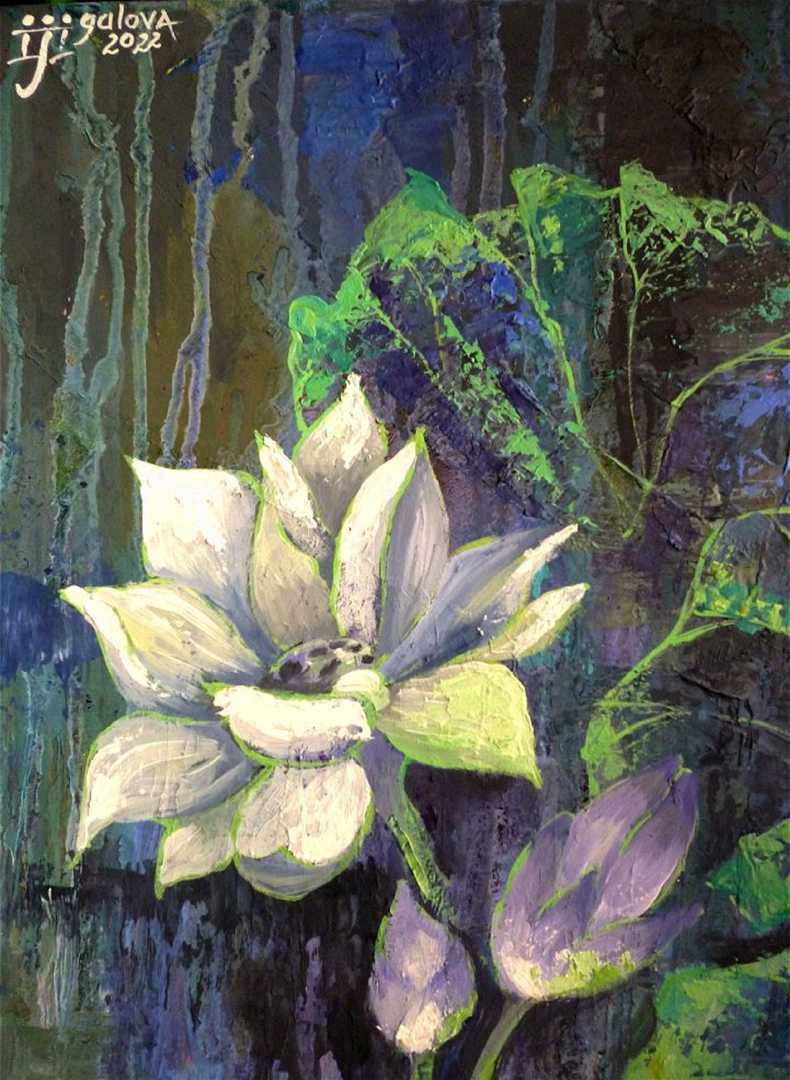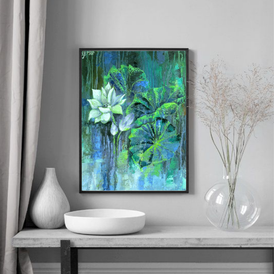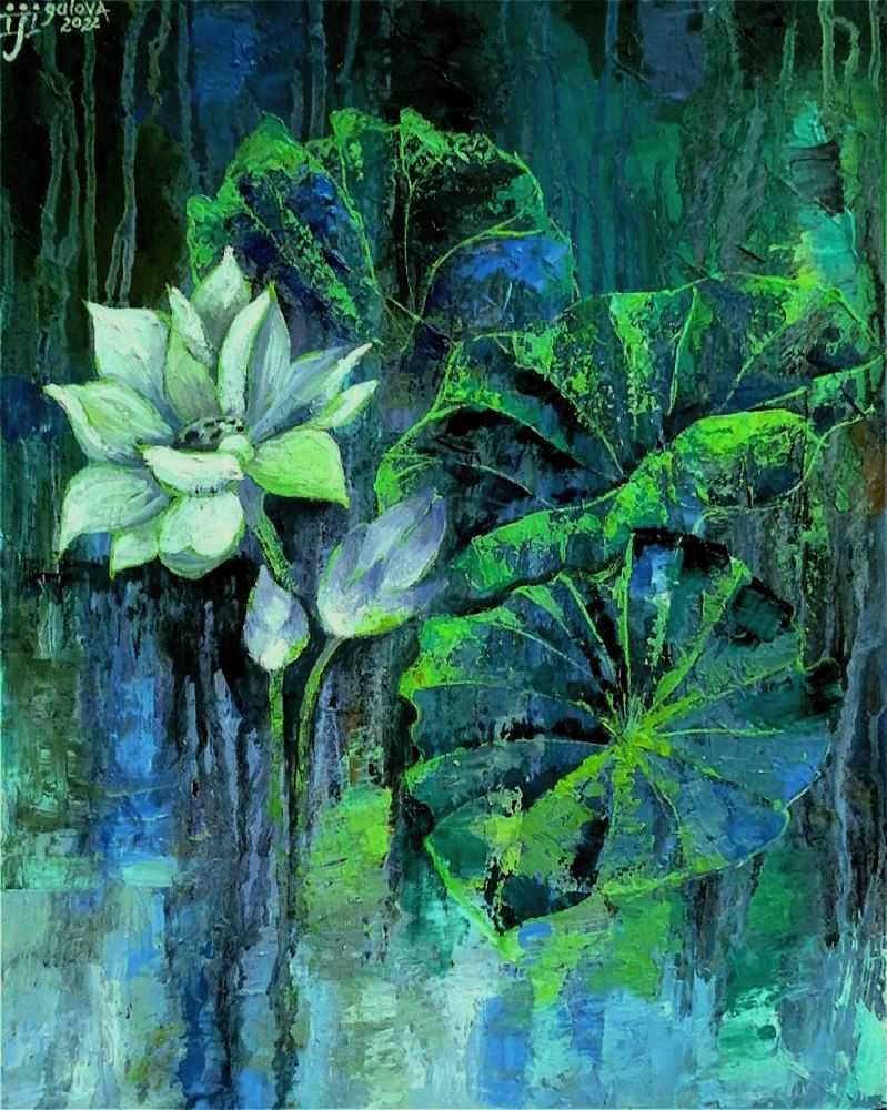 Картина "Лотосы" написана на грунтованном оргалите размером 41 / 51 см, толщиной 3 мм.  Это уникальный экземпляр, ручная работа, авторская композиция и техника.