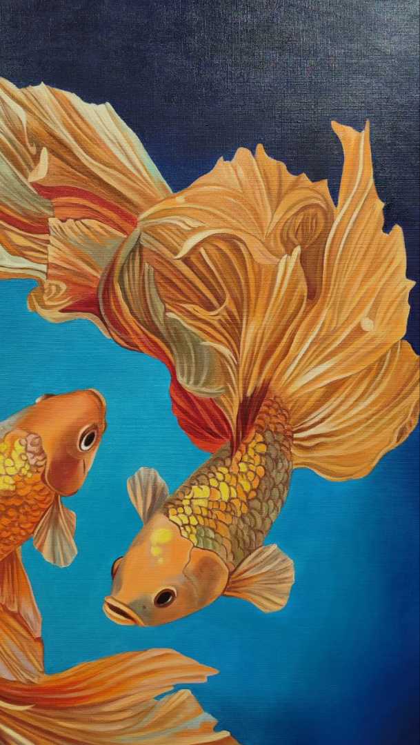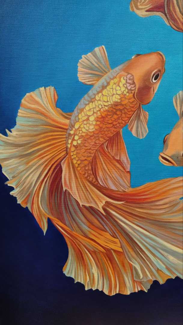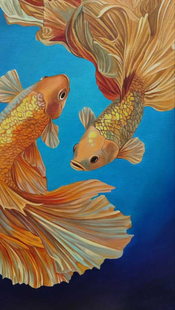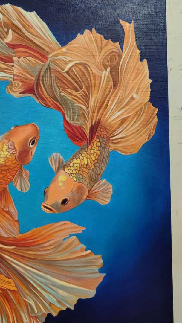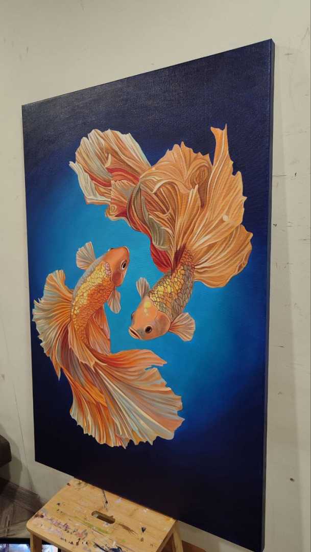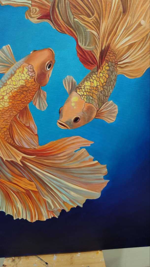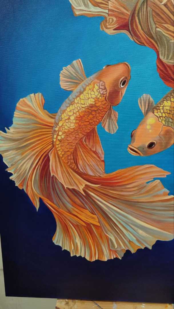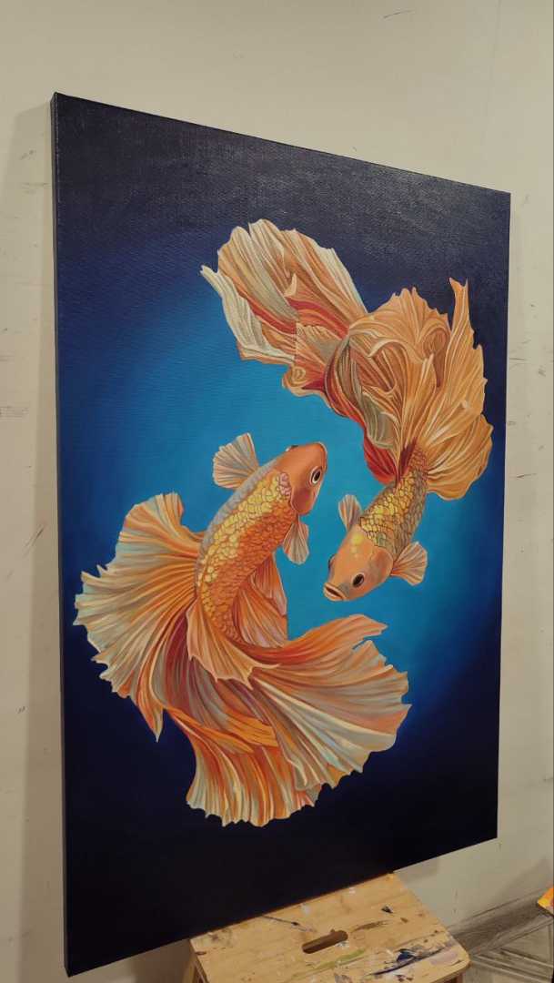 Уникальная картина маслом на холсте Карпы кои Детальная проработка