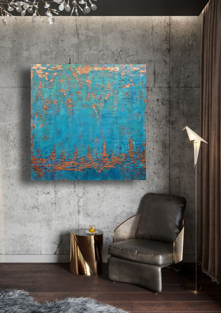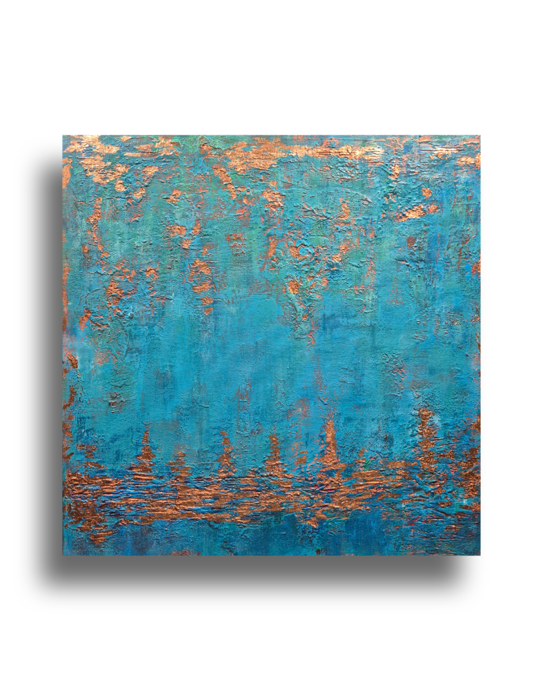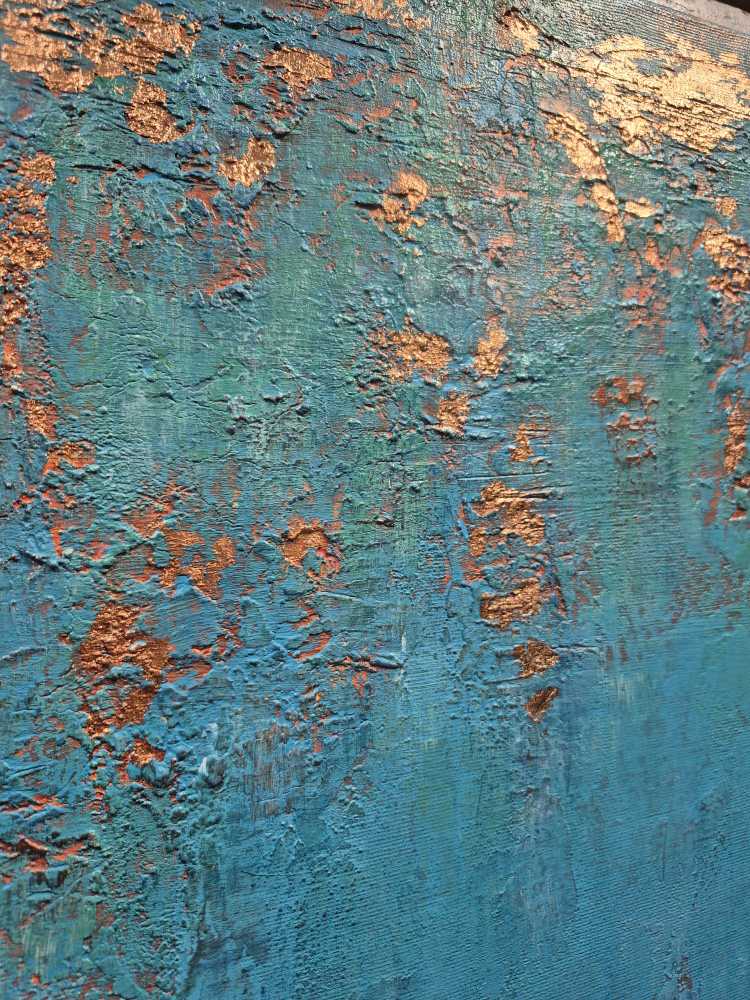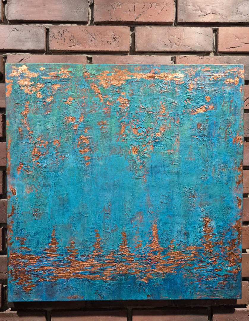 Материалы: Холст на подрамнике Текстурная паста Акрил Медная поталь Лак