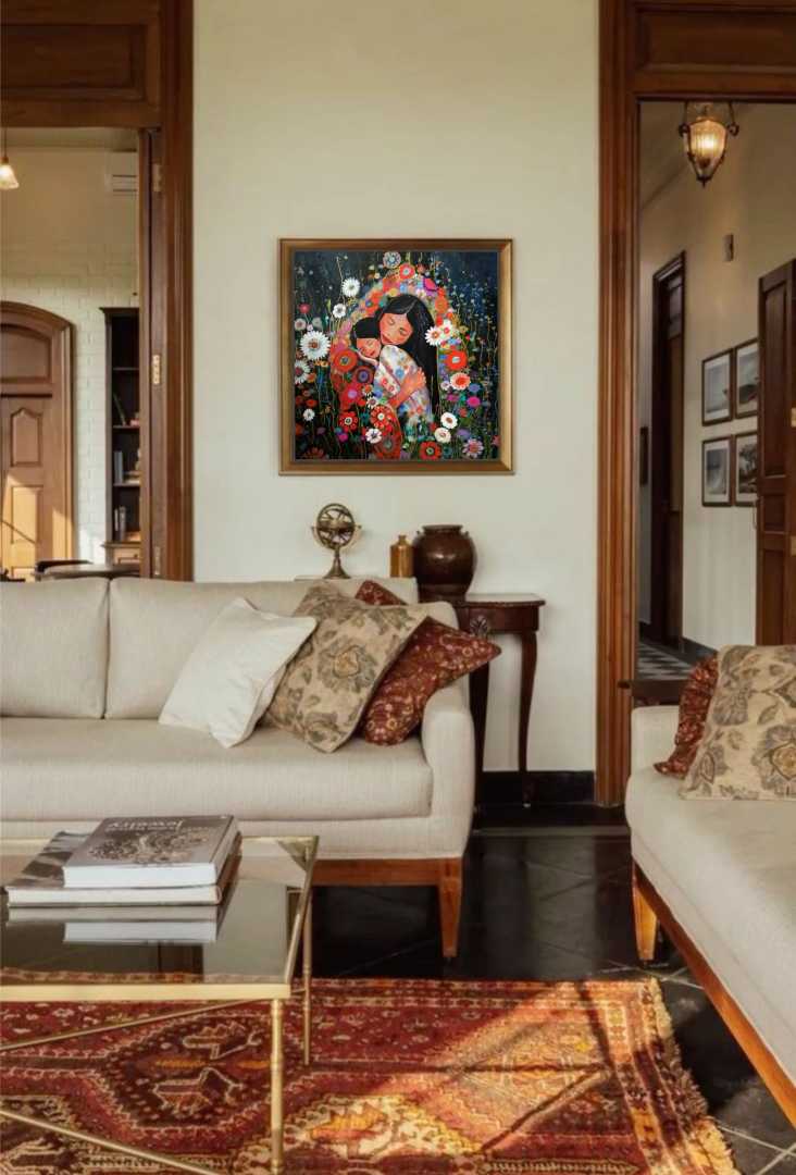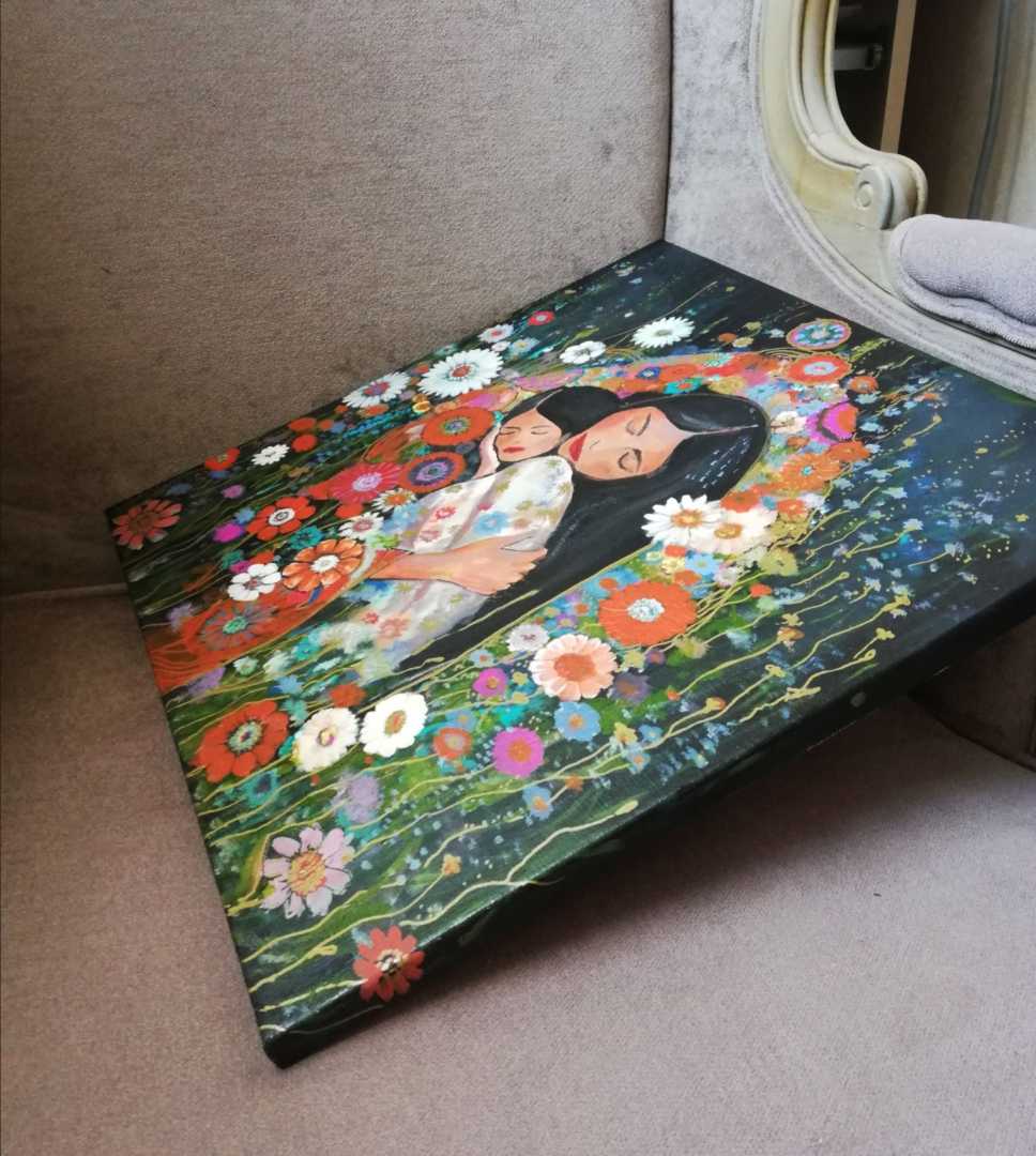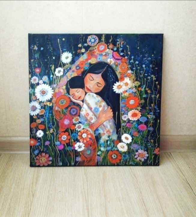 Картина оберег "Мама" написана на холсте с подрамником размером 40 х40 см акриловыми красками, покрыта акриловым лаком. Картина будет оберегать свою владелицу.