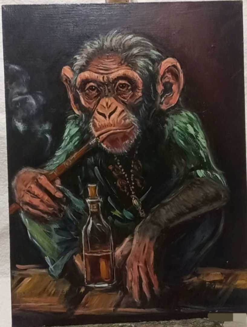 Интересный сюжет , где обезьяна с сигарой сидит в раздумьях