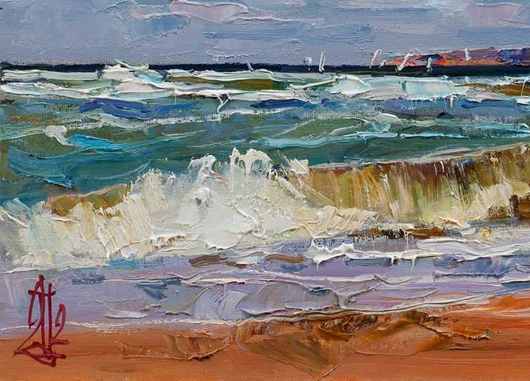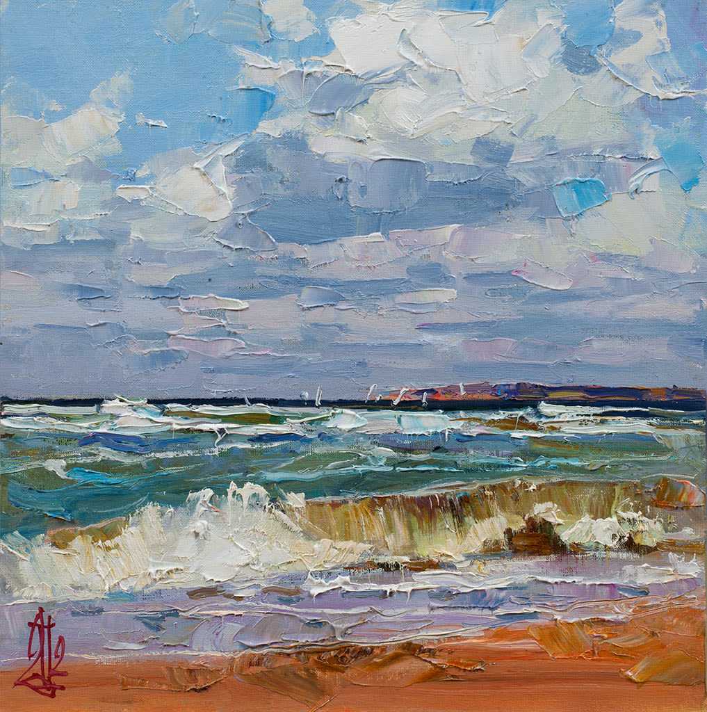 Поздеев Сергей "Прибой" 30x30 см, холст, картон, масло, 2012 г.
