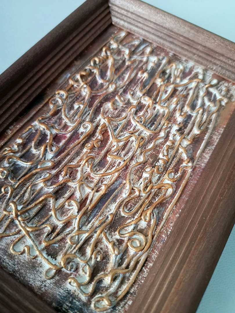 Картина выполнена в смешанной технике, имеет фактуру и объем. Оформлена в деревянную рамку с подставкой. Размер без рамки – 10х1