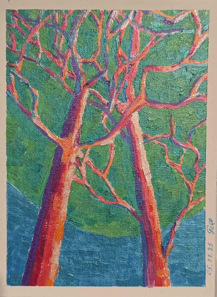 Деревья акрилом перламутровым, холст на картоне 20х30 см