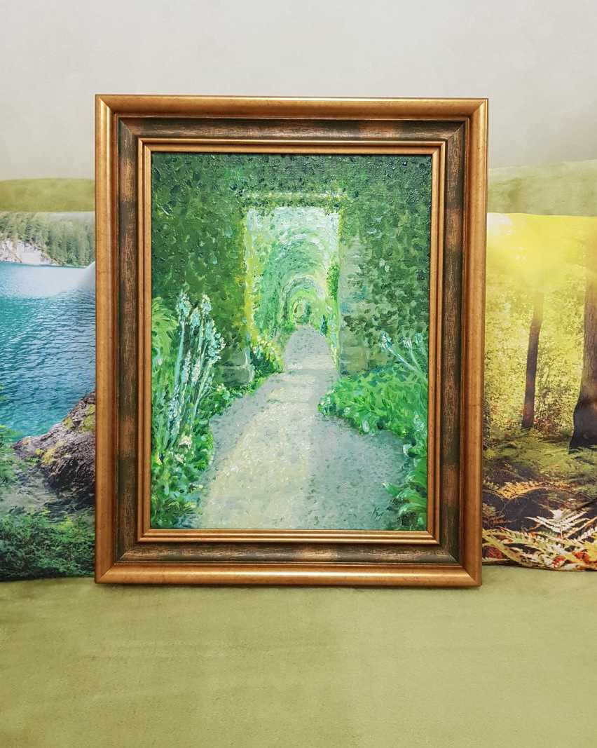 Пейзаж маслом "50 оттенков зеленого" для снятия городского стресса ))) Картина в комплекте с рамой 40*50 см.