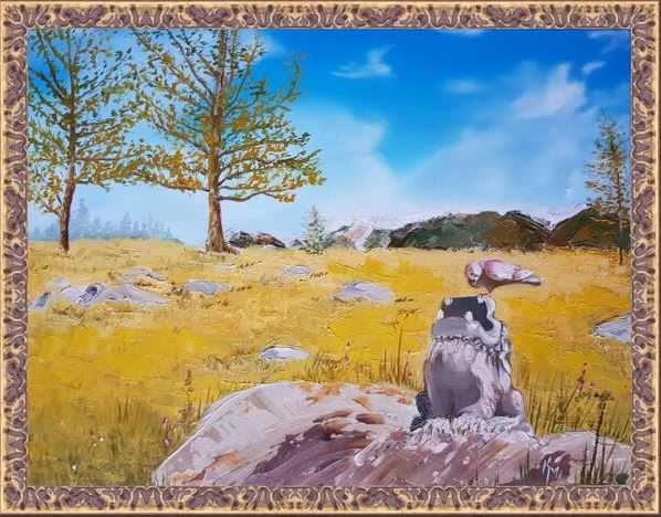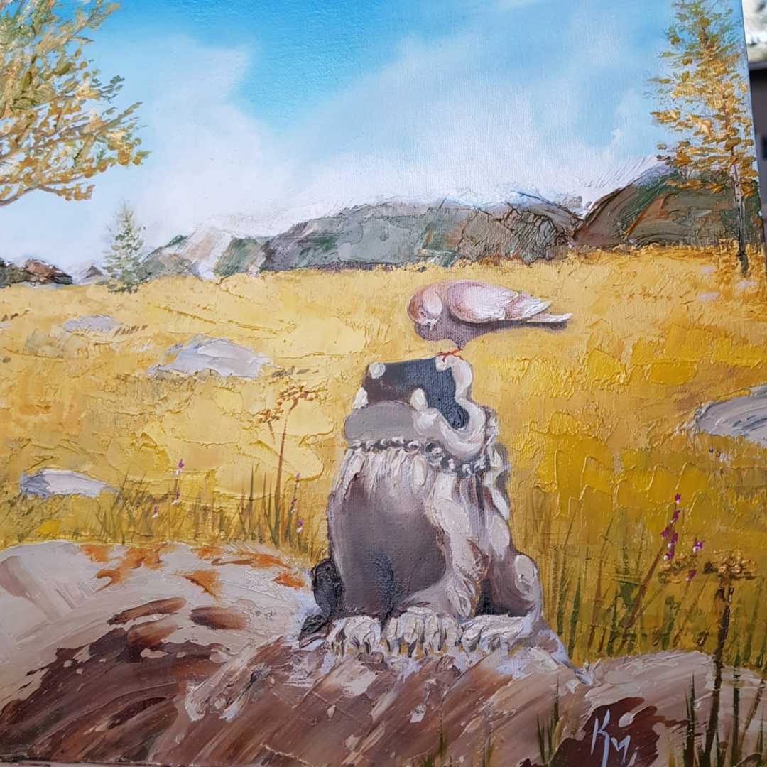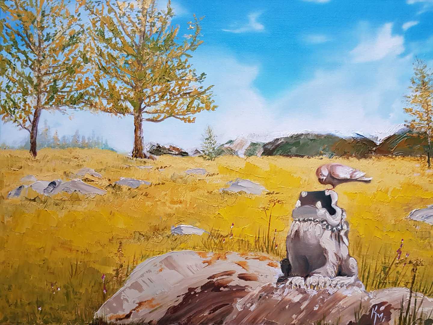 Бурятия Тункинская долина + моя фантазия перенесла в это место, чтобы подчеркнуть его сказочность, буддийскую статую с любопытной птицей - момент из жизни)))