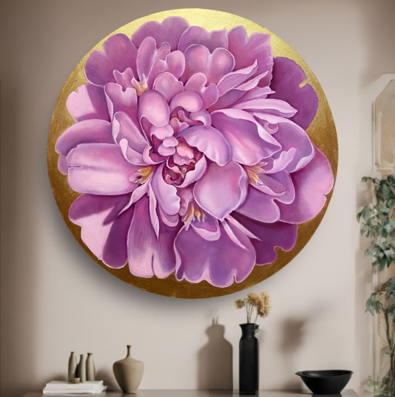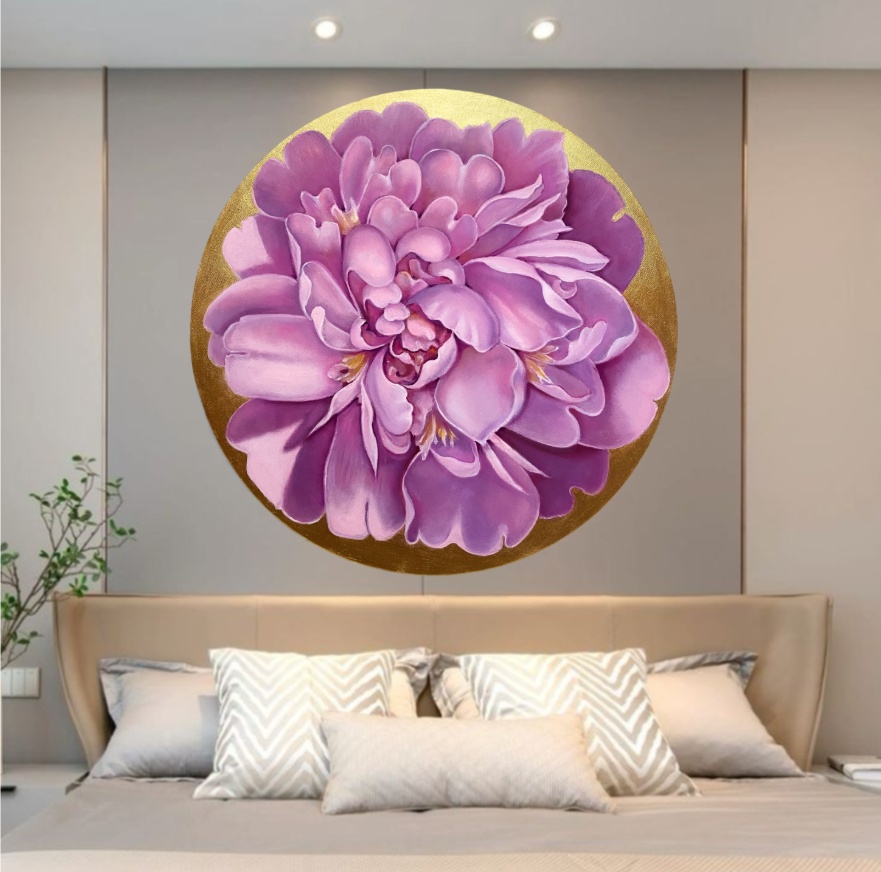 бой комнате. каждая деталь отлажена художником для долговечности света и сияния на стене. работа идеально подходит для гостинных, спален, прихожих, кухни. Может стать идеальным подарком. Стильный акцент без перегруза. В наличии размер диаметром 60 см. Но вы можете заказать картину любого размера (70см, 80см, 90см.100см.) Быстрая доставка и безопасная упаковка. Сделайте свой интерьер вдохновляющим уже сегодня! Пионы - цветы любви, никогда не выходят из моды!