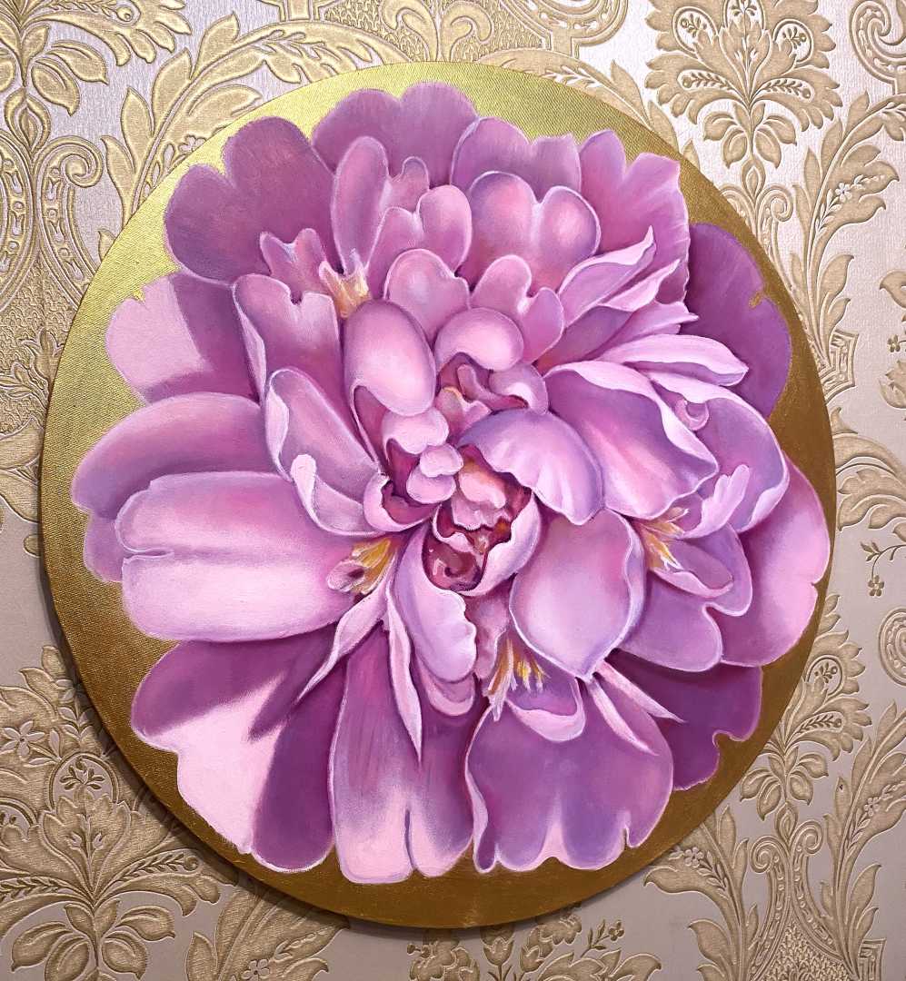 Этот нежно розовый объёмный пион на золотом фоне - для интерьера мечты.Этот интерьерный шедевр добавит в ваш дом тепло, свет элегантность. лепестки словно только что распустились на холсте, так, что можно почувствовать аромат пиона. Пион в золотых оттенках создаёт роскошную атмосферу в лю