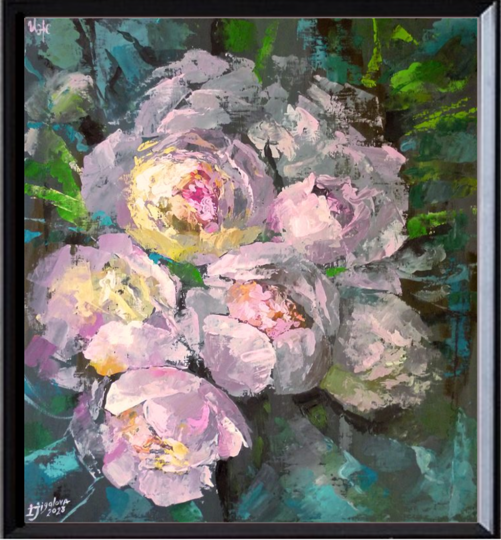 Картина "Пионы" написана на грунтованном оргалите размером 36 / 40 см, толщиной 3 мм. Это уникальный экземпляр, ручная работа. Авторская композиция и техника.