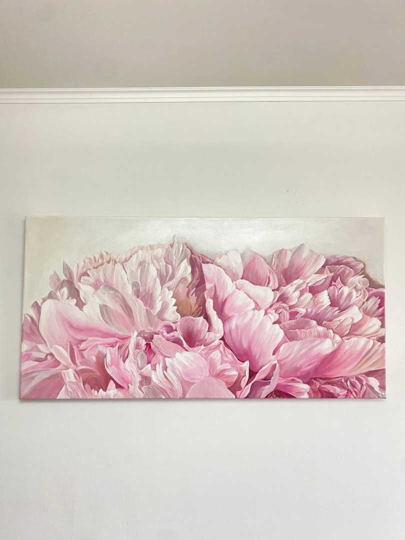 кстуры. Акриловая живопись с лаковым покрытием придаёт картине глубину и мягкое сияние — будто цветы только что распустились под утренним светом.