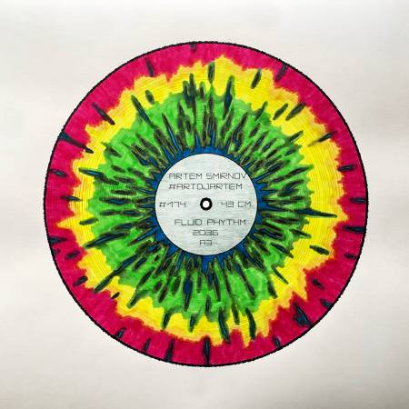 «Плавный Ритм» («Fluid Rhythm») - визуальный эквивалент саундтрека к свободе. Три цветные пластинки на бумаге — это застывшие моменты драйва, переведенные в абстракцию. В каждой линии и пятне пульс drum&bass: ломаные ритмы, тяжелые басы и эйфория мелодики.