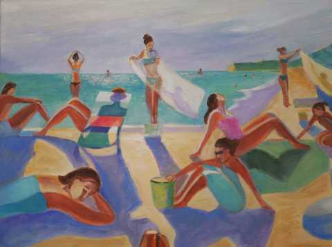 Картина «Пляж с девушками» — лето, море и энергия отдыха