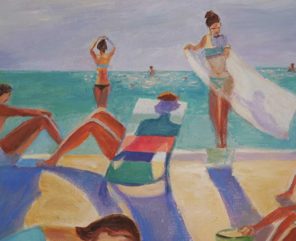 Работа сочетает лёгкость современного письма с выразительной композицией. Картина «Пляж» подойдёт тем, кто ценит атмосферные сцены, морские мотивы и позитивное настроение в интерьере.
