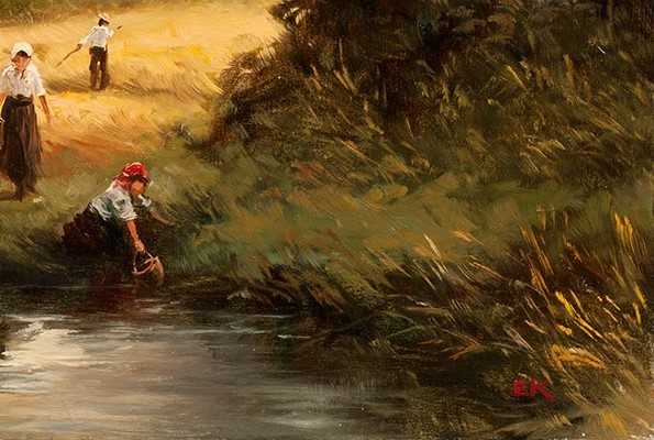 Каковкин Евгений. По воду, 2012г., 30х40см., холст, масло. В раме. Лауреат Золотой Медали Международного Фонда "Культурное достояние".