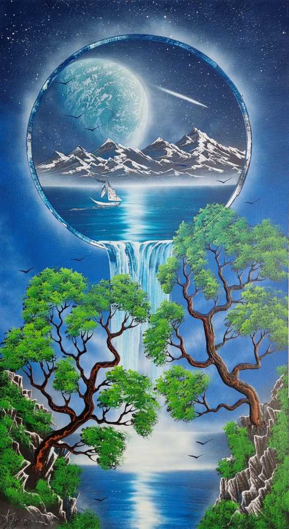Создание впечатления невероятного путешествия в другие миры и связи между разными измерениями. Эта картина может толковаться как врата в параллельную реальность, место встречи между мирами или прост