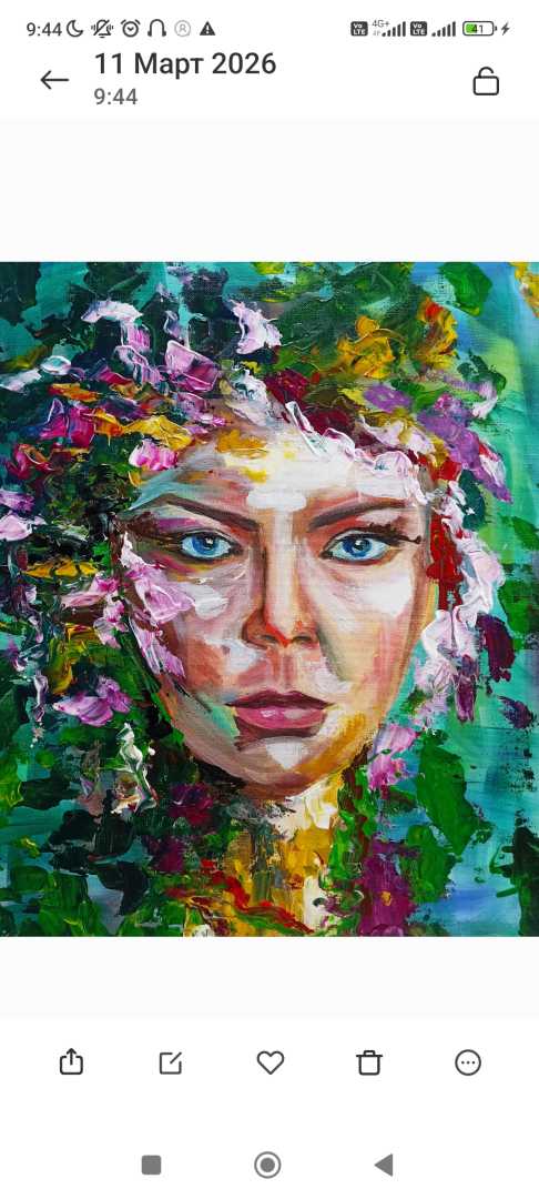 Интерьерный портрет акрилом. Пришла весна и захотелось цветов и зелени
