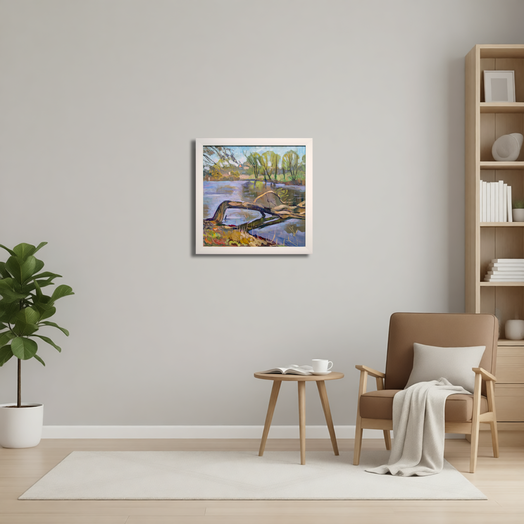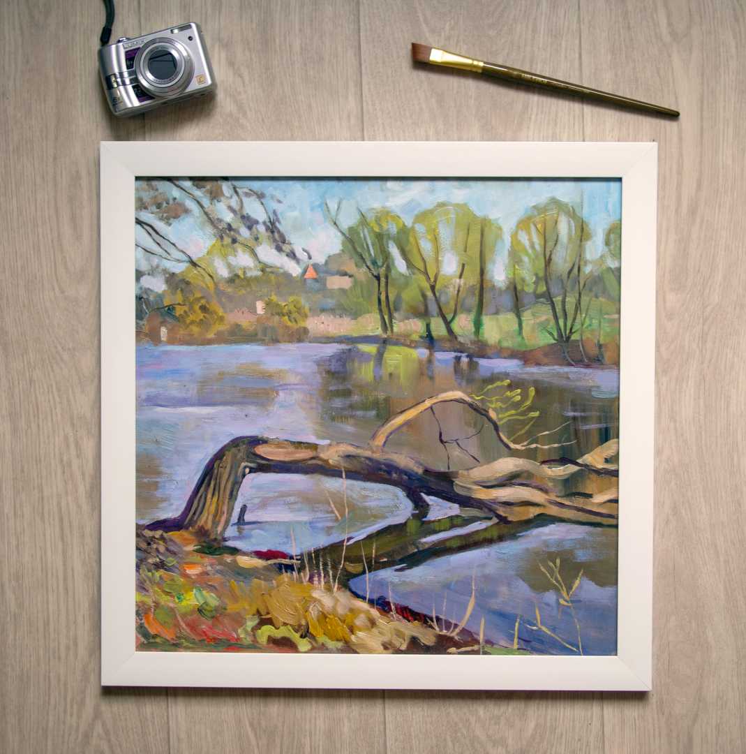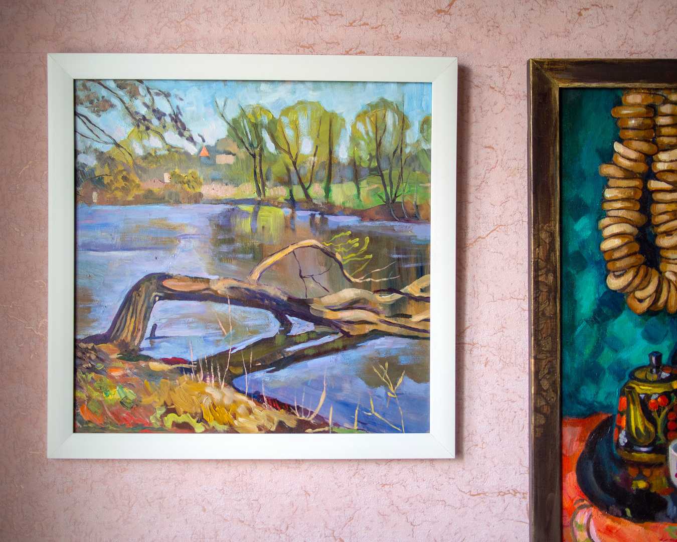 Умиротворяющий пейзаж будет создавать расслабляющую атмосферу, особенно если в комнате преобладают натуральные материалы (дерево, лён, хлопок). Габариты картины вместе с рамой - 49х50 см . Подходит в скандинавский стиль, прованс, кантри, бохо, эко-стиль, современный минимализм.