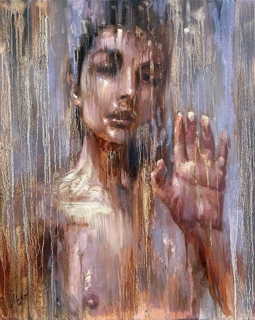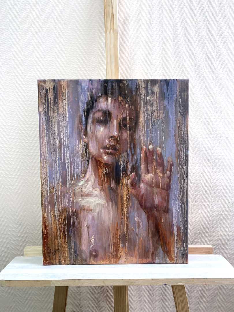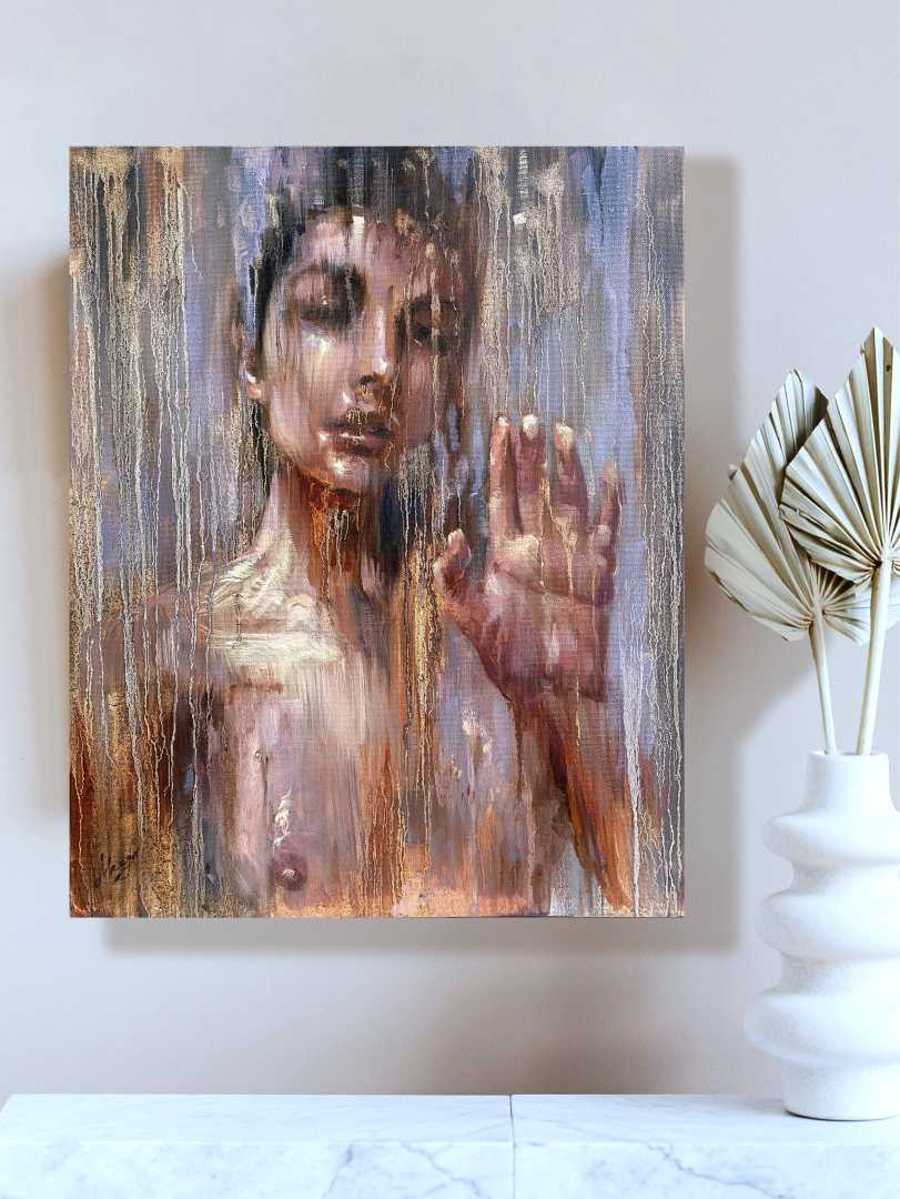 Картина маслом на холсте в жанре ню. Девушка под душем