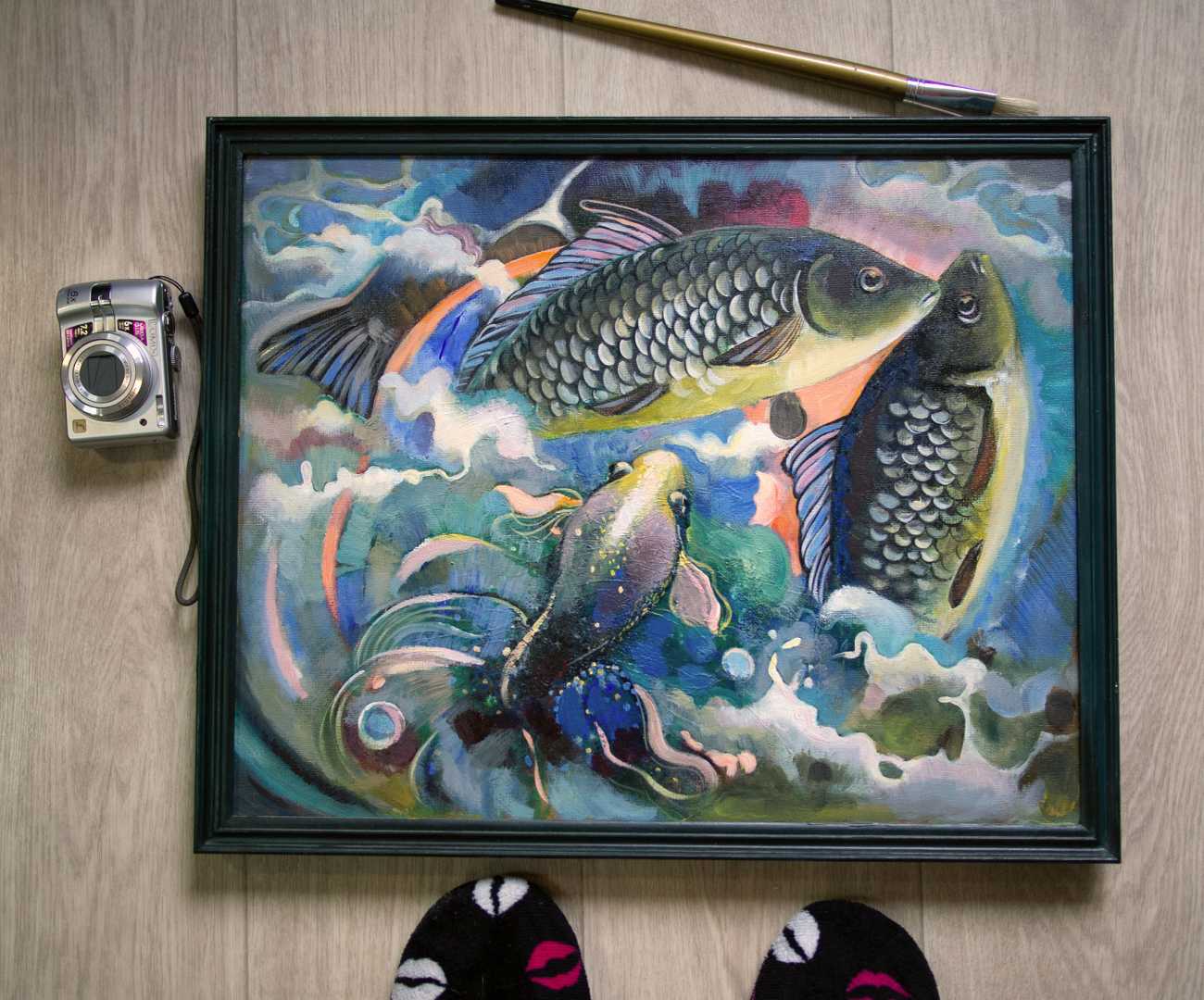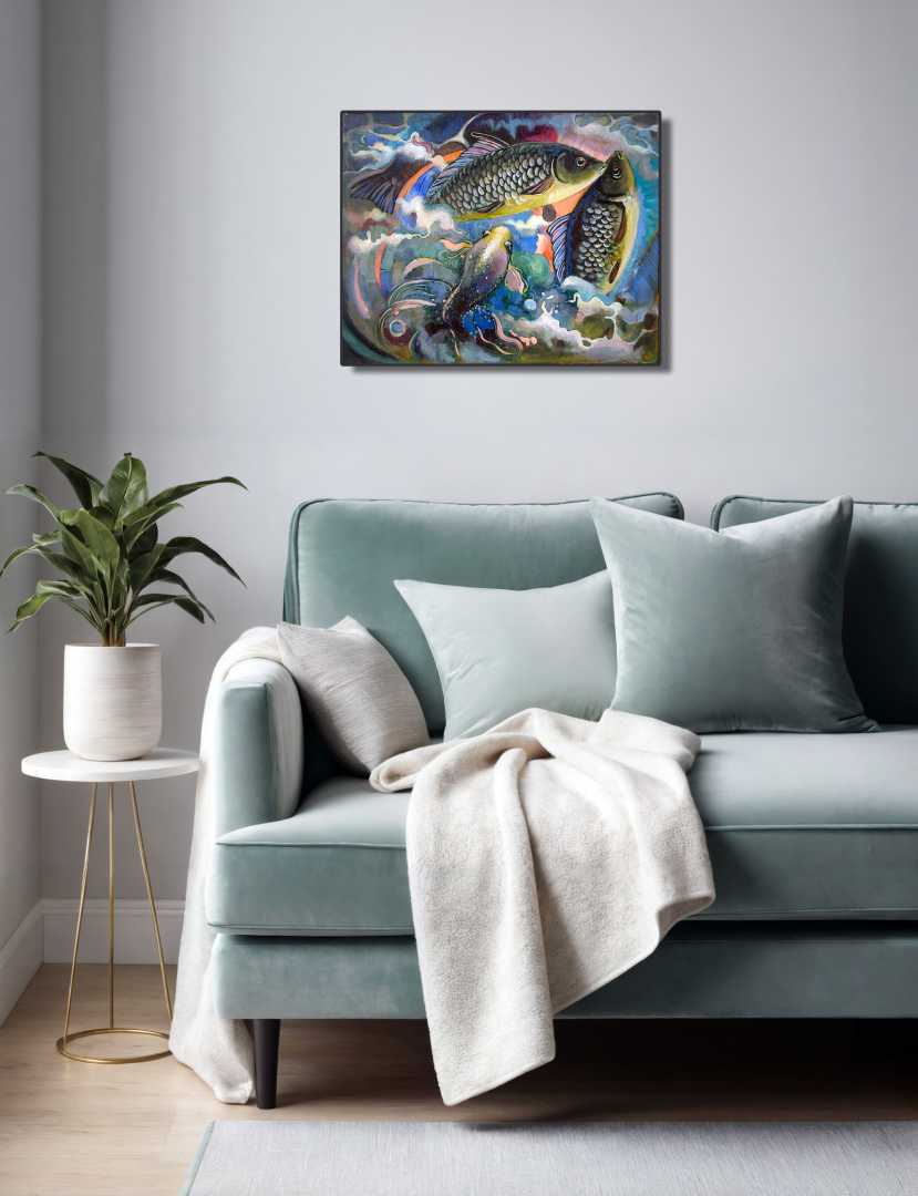 Год создания - 2022. Эта работа отлично подойдет для любого интерьера, который тяготеет к артистичности и эклектике, и где она сможет стать центральным элементом декора. А именно - лофт, современный, минимализм, ар-деко, эклектика. Картина приняла участие в персональной выставке в МЦК "Элегия" в Зад