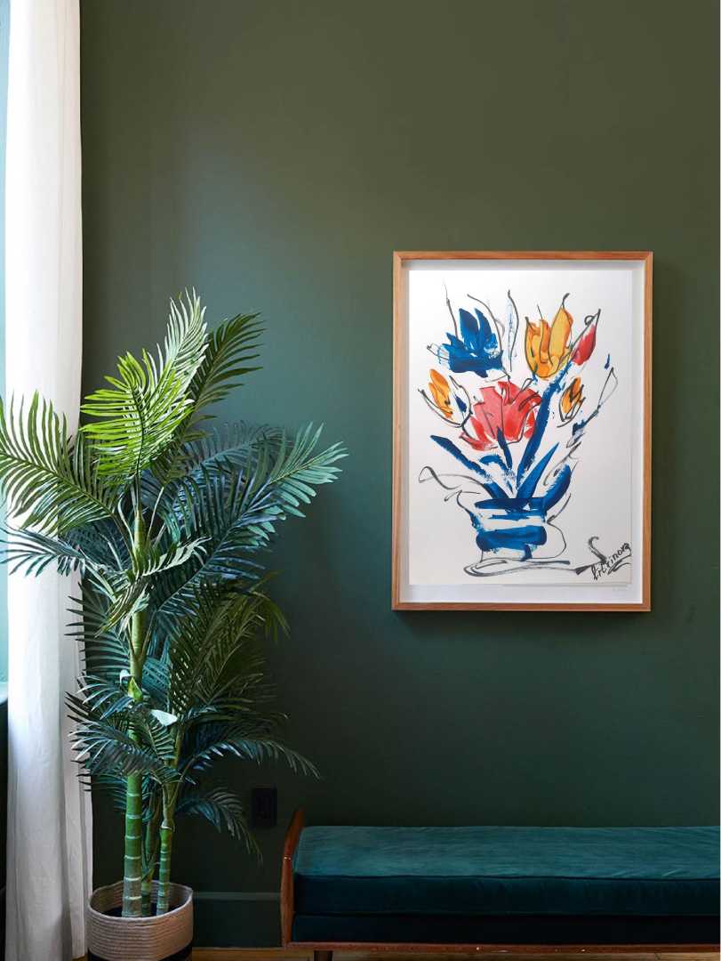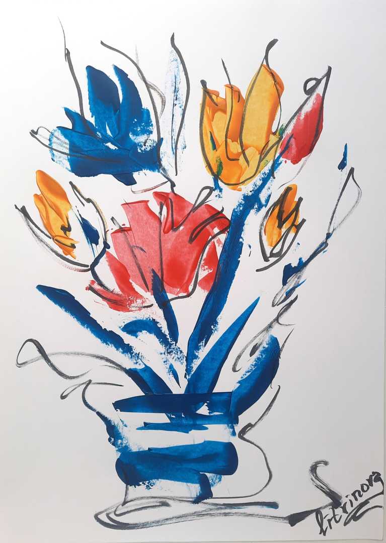 В этой картине передала настроение с помощью экспрессивных графических элементов и цветочных мотивов.