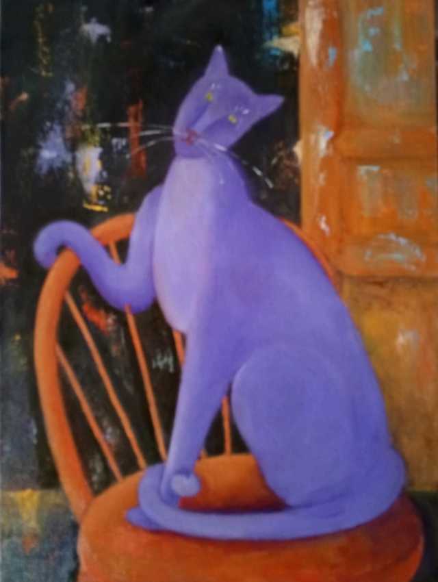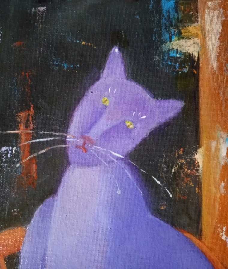Сиреневая кошечка Глория. Масло, холст на картоне, 30х40. Боковинки прокрашены, холст выглядит аккуратно, но лучше оформить в раму. Для покупателей из Москвы и Лыткарино смогу организовать бесплатную доставку. К продаже картина будет готова к середине июня, сейчас на просушке.